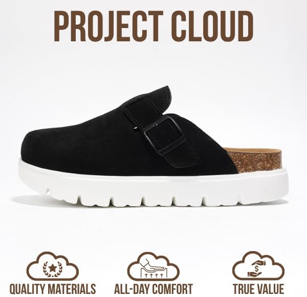 Project Cloud Genuine Leather Platform Clogs for Women Footwear - Memory Foam Arch Support Cork Footbed Casual Shoes & Mules for Women 2025 (Benton Chunky)