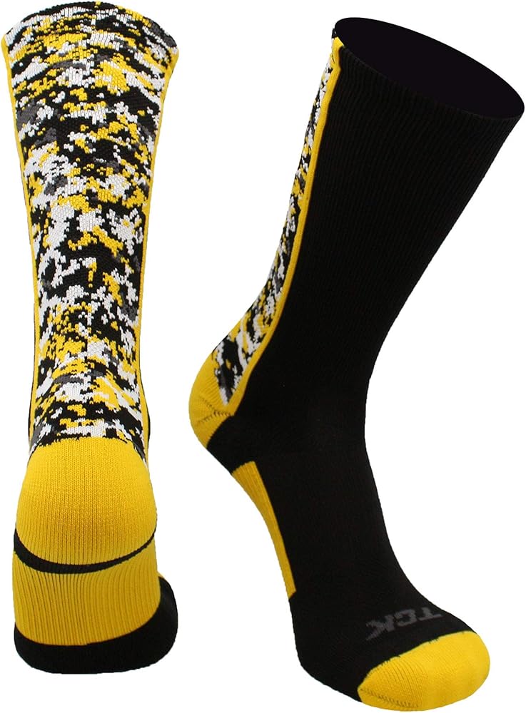 TCK Digital Camo Athletic Performance Crew Socks are a must have for your next game, outing, or practice. Featuring moisture control yarns, breathable mesh, ergonomic cushion, arch compression, and a double welt top, they provide maximum athletic performance. These socks are suitable for both boys and girls and come in youth and adult sizes. Our crew socks are great for basketball, football, lacrosse, wrestling, volleyball & more! Founded in 196, TCK socks are manufactured with pride in the USA.