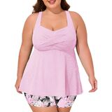 【RIBBED PLUS SIZE BATHING SUIT】This two piece plus size tankini sets swimsuit features ribbed knit fabric that makes you feel soft and comfortable to wear. The swim top with removable push-up padded bras which offer you great support and the boyshort with pocket that gives you good coverage.