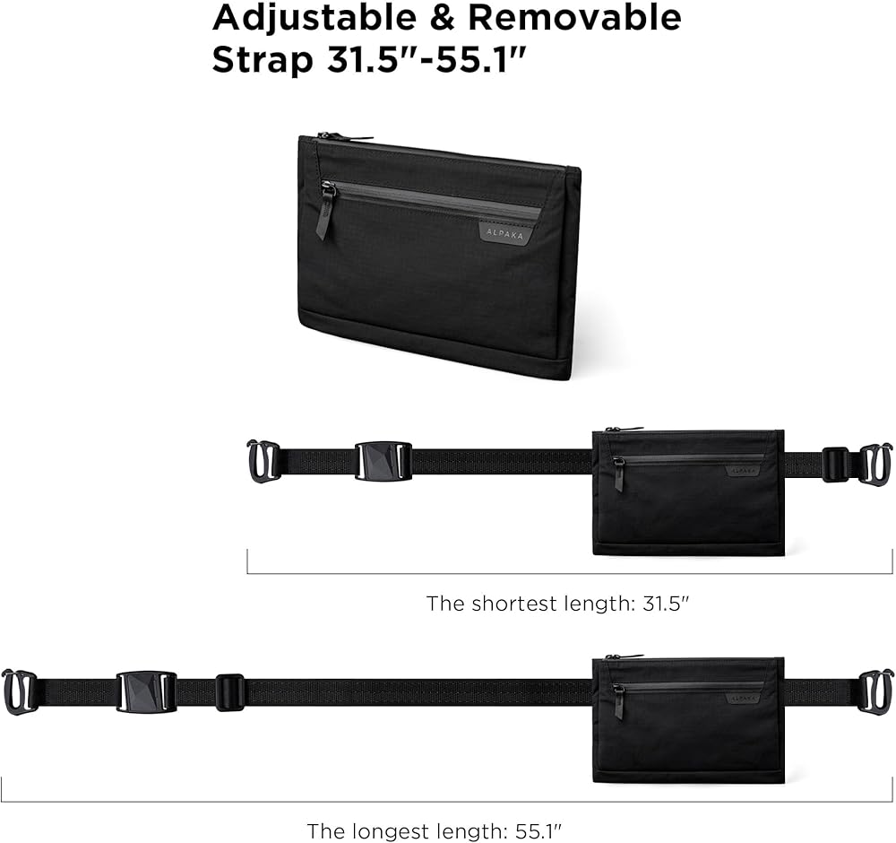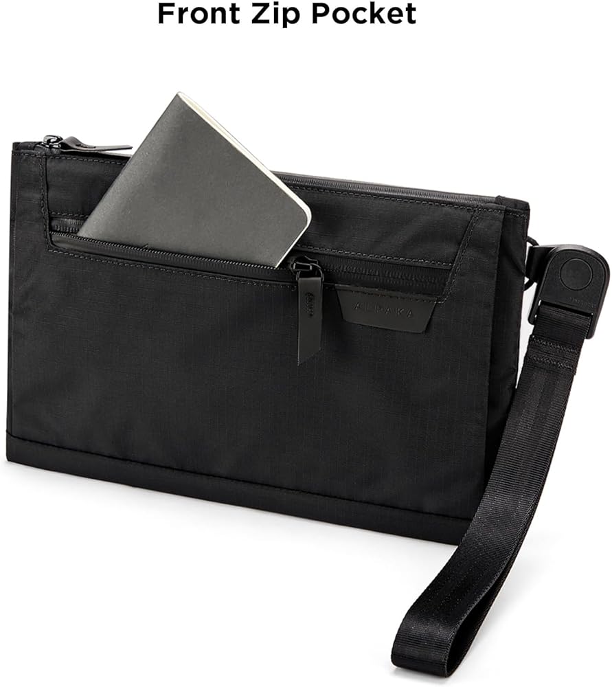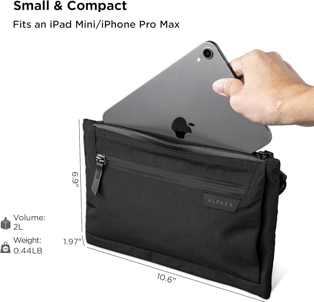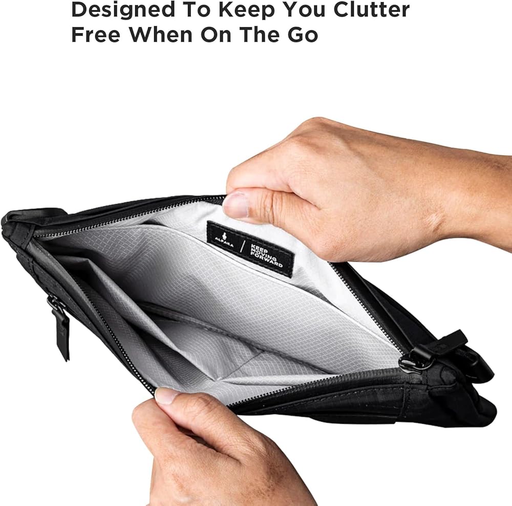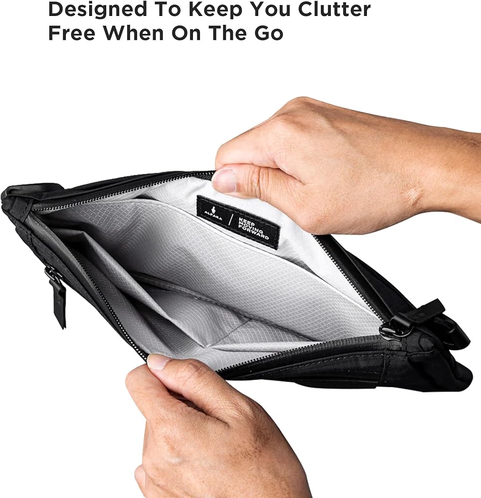 ALPAKA Zip Pouch Max V2 - Black Axoflux 210D Water Resistant Fabric, Weatherproof YKK Zippers,Front Zip Pocket, Compact Men Sling Bag - Passport Holder & Travel Wallet Pouch for Family Men