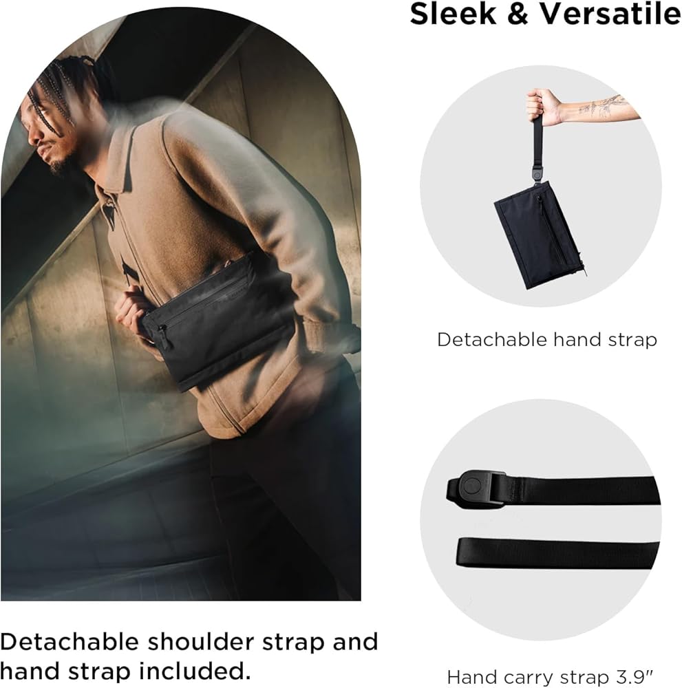 Versatile & Multi-purpose: Wear it your way! Whether cross body, over shoulder or hand carry. The detachable shoulder strap features Maglockz buckles for anti-theft protection and quick release. The strap length is adjustable from 31.5-55”, creating a perfect fit for you. Or use the included hand strap to carry on your wrist
