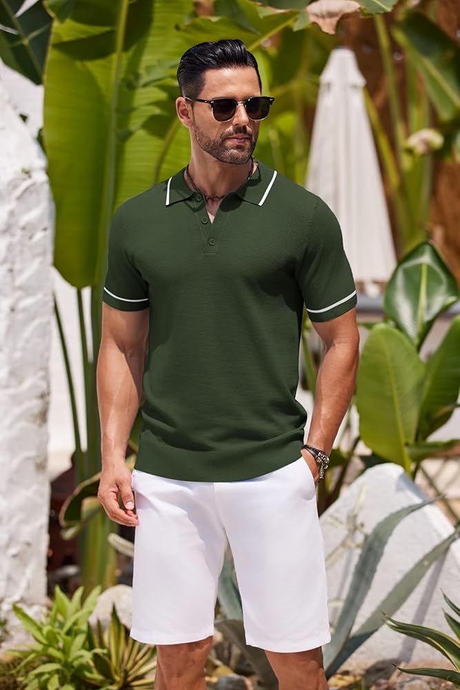 Soft Fabric-- The casual crochet knit polo shirts are made of very soft, skin friendly, stretch, wrinkle-resistant and breathable material. Men's short sleeve knitted polo shirts will make you comfortable and flexible in hot summer.