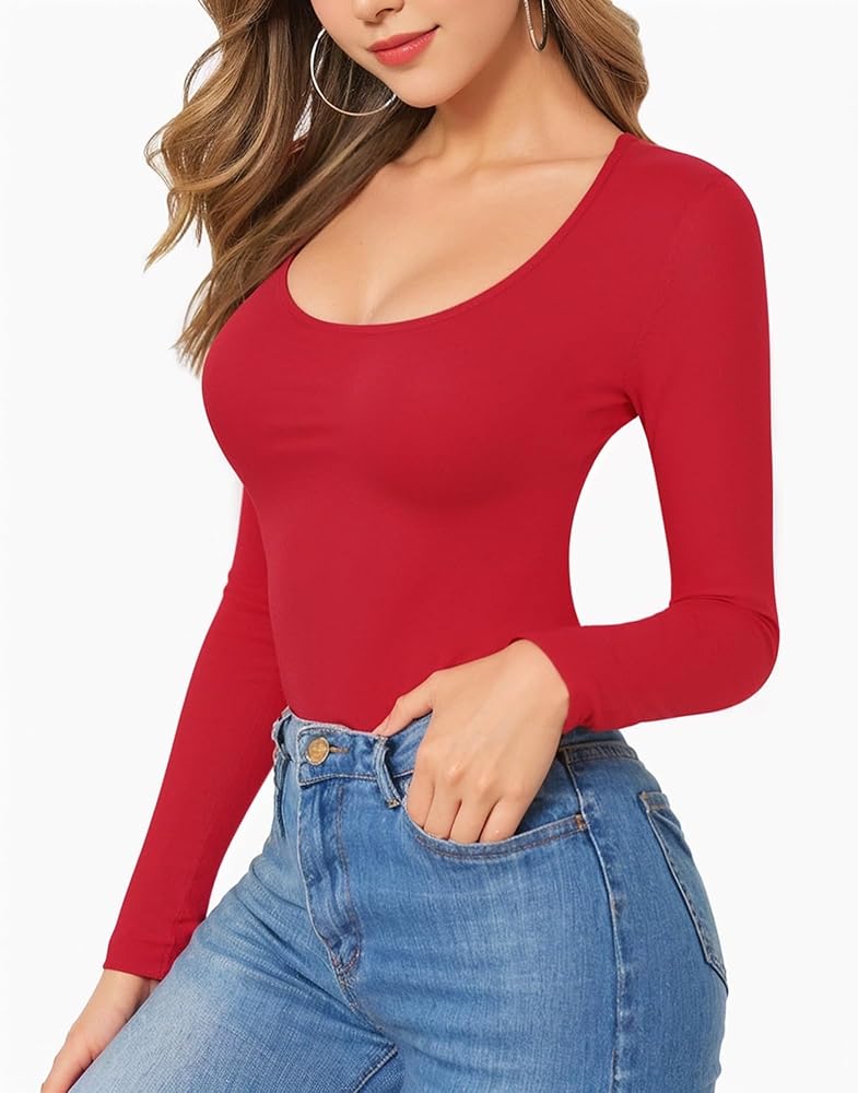 MANGOPOP Womens Scoop Neck Short Sleeve Long Sleeve Slim Fit T Shirt Tunic Tops Tee