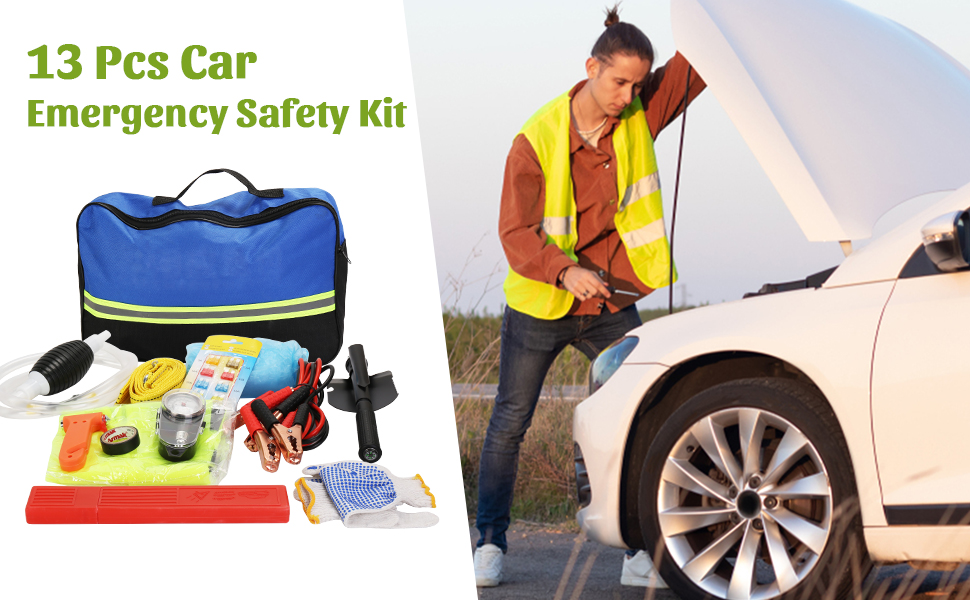 13 pcs Emergency Kit: This emergency kit is necessary for you when you meet some emergencies such as flat tires, especially suitable for winter weather, road trips.