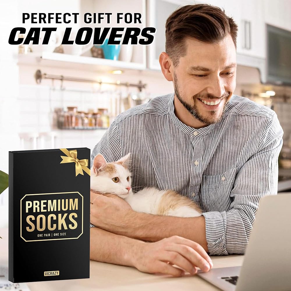 COOL GIFTS FOR CAT LOVERS - Our Vicrazy novelty cat socks for women are perfect for any occasion. They make ideal cat gifts for women and anyone who loves cats. These funny cat gifts include cute cat stuff and make great cat stocking stuffers for women. Whether it's for a cat fuzzy socks are sure to bring joy to any cat lover gifts for women.