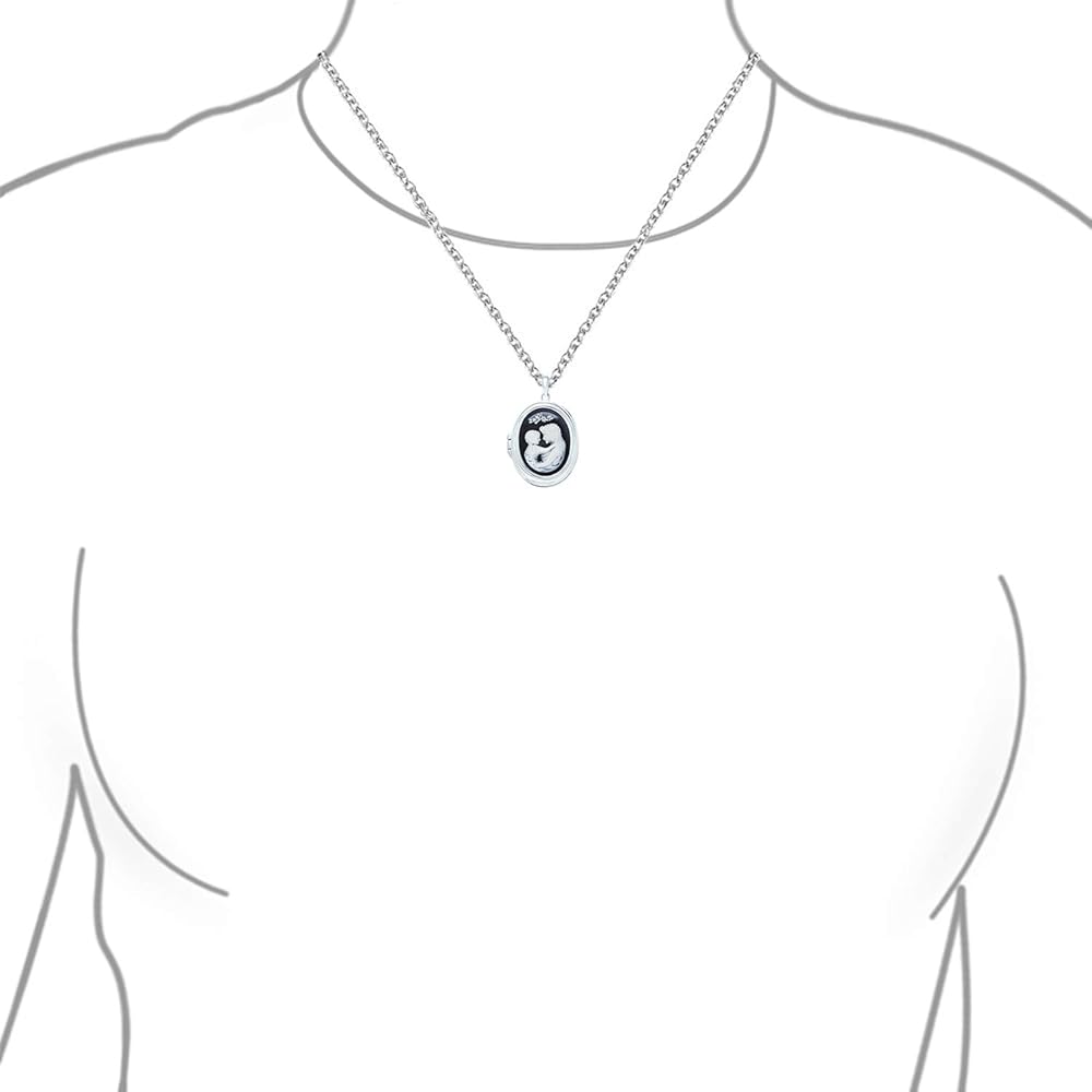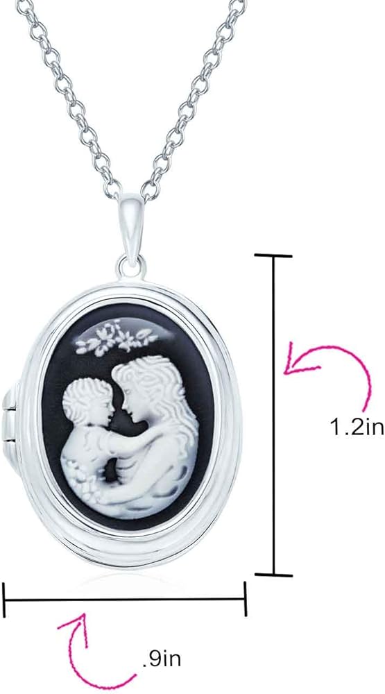 Personalize Vintage Victorian Style Black Blue White Carved Mother Loving Cameo Photo Locket Pendant Son Daughter Necklace For Women .925 Sterling Silver Women Hold Picture Custom Engraved