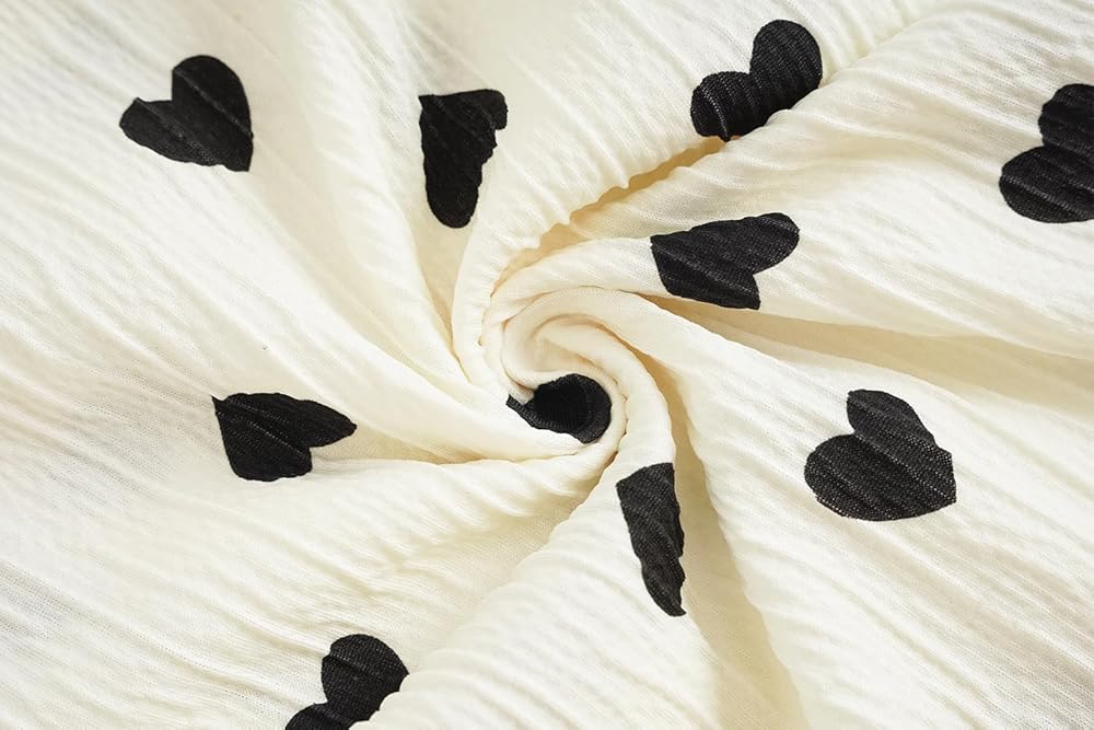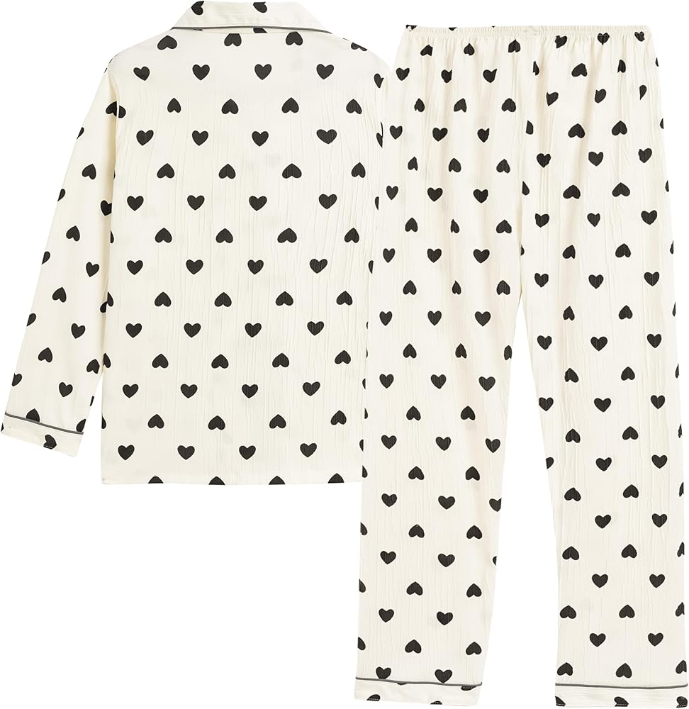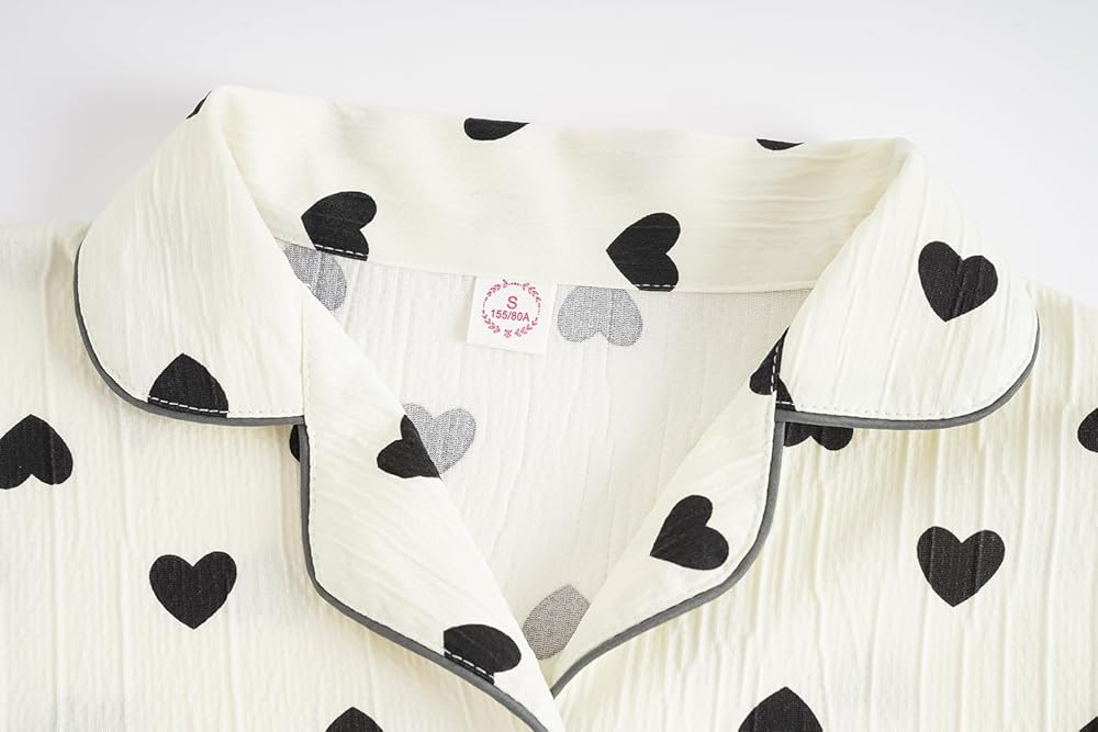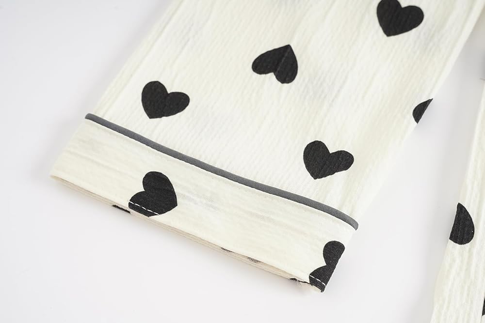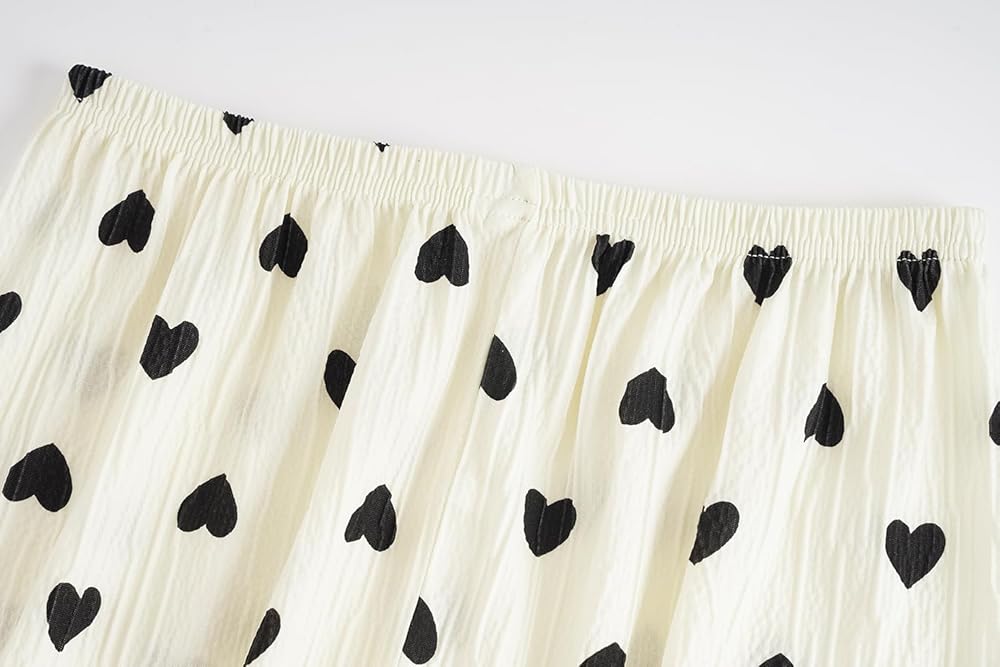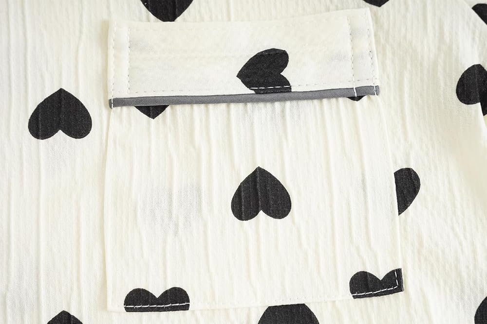 • Style/Design: Short sleeve 2PCS sets with a long pants pajama sets for kids or teens. Elastic waistband. Funny patterns printed with floral, bunny, cherry, and heart shape. Button Down and shirt collar design, lightweight and comfortable for loungewear and nightwear, super soft and breathable material are skin-friendly.