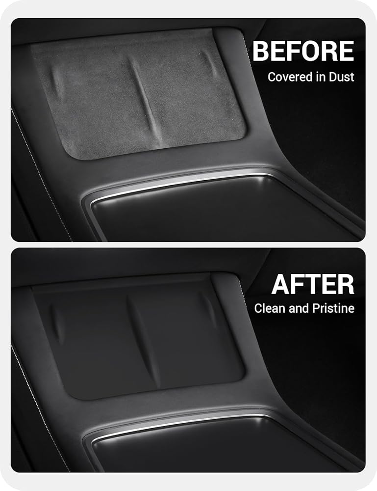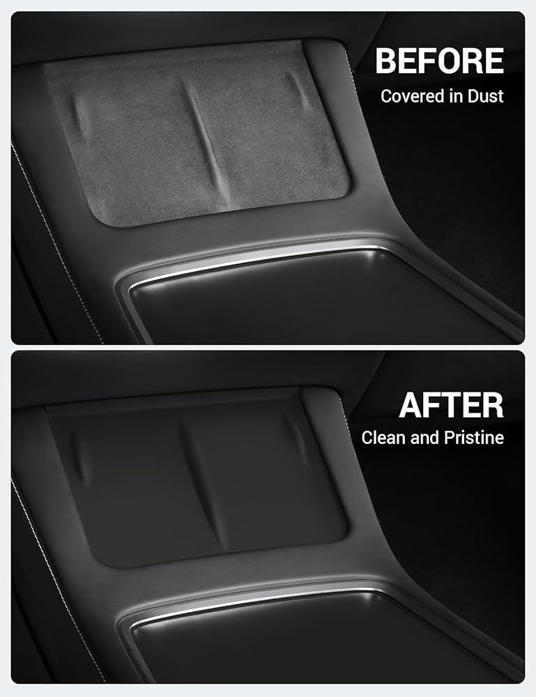 Complete Coverage Protection: Tesla's original center console features a velvet-like lining that tends to attract lint and dirt, making it difficult to wipe down and clean. Model Y wireless charging pad features a wrapped edge design, providing full coverage protection for your center console. It effectively prevents spills, dirt, and dust from accumulating and soiling your center console, ensuring a clean and well-maintained control panel.