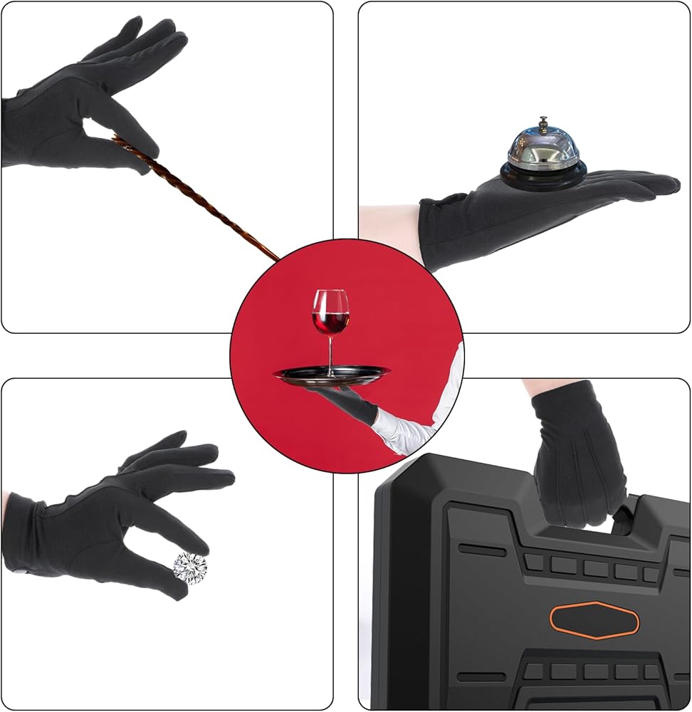 【Breathable Material】: The dress gloves are made of quality polyester, soft and smooth on the touch, lightweight and breathable to wear while working, they are washable and reusable, which has nice sweat absorption, skin-friendly, stretch enough to fit both women and men's hands