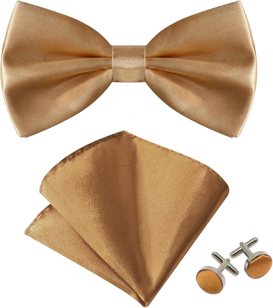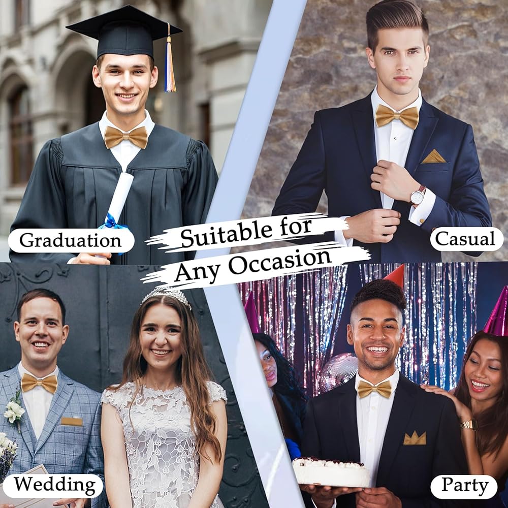 Package Contentment: 1*Bow tie, 1*pocket square, 1 pair of cuff links; You wiil receive more compliments when wearing this bowtie