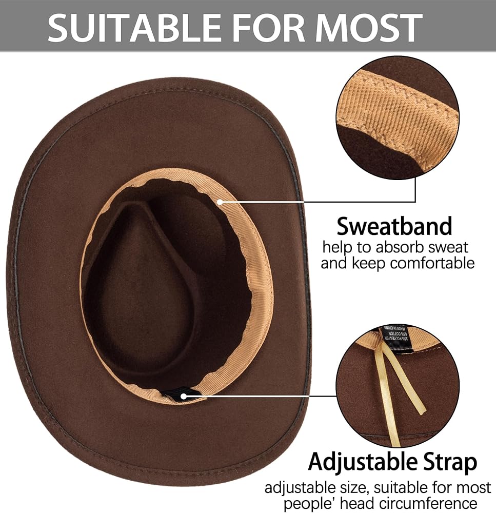 Breathable:These cowgirl hats are breathable and comfortable, suitable for spring, summer,or general warm weather.Includes a sweat absorbent flexible inner band for comfort.