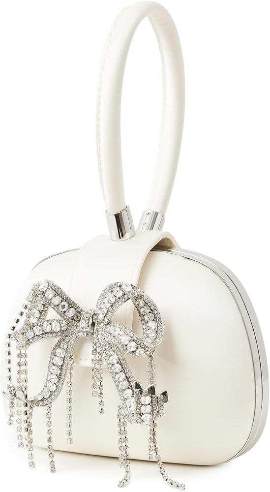 Women's Cream Satin Top Handle Clutch Bag