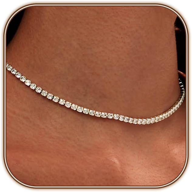 Tennis Necklace for Women 14K Gold Plated or Silver Rhinestone Choker Necklaces Dainty Zirconia Cut Faux Diamond chain 3mm