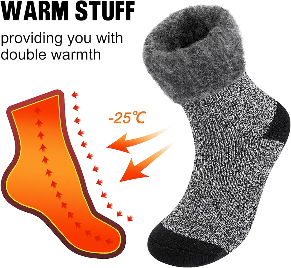 Keep Warm: The winter socks for men are seven times warmer than regular cotton socks; The thermal socks for men have been specially designed to keep your feet warm even when the temperature outside is way too low