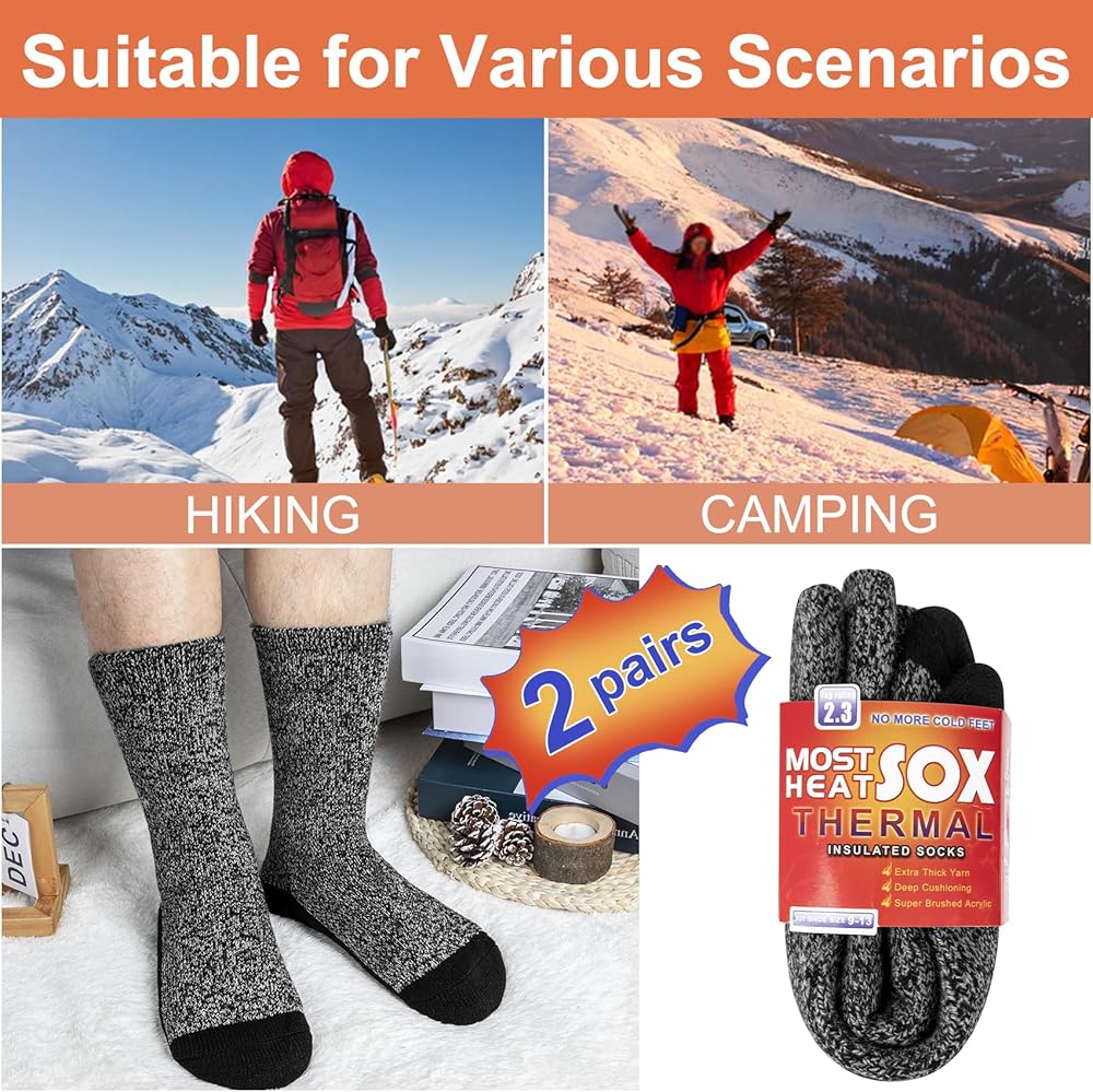 One Size: The mens thermal socks come in standard sock sizes, sizes 9-13 for US men; Your feet will be comfortable and your toes will not be restricted, providing a comfortable wearing experience for your winter activities
