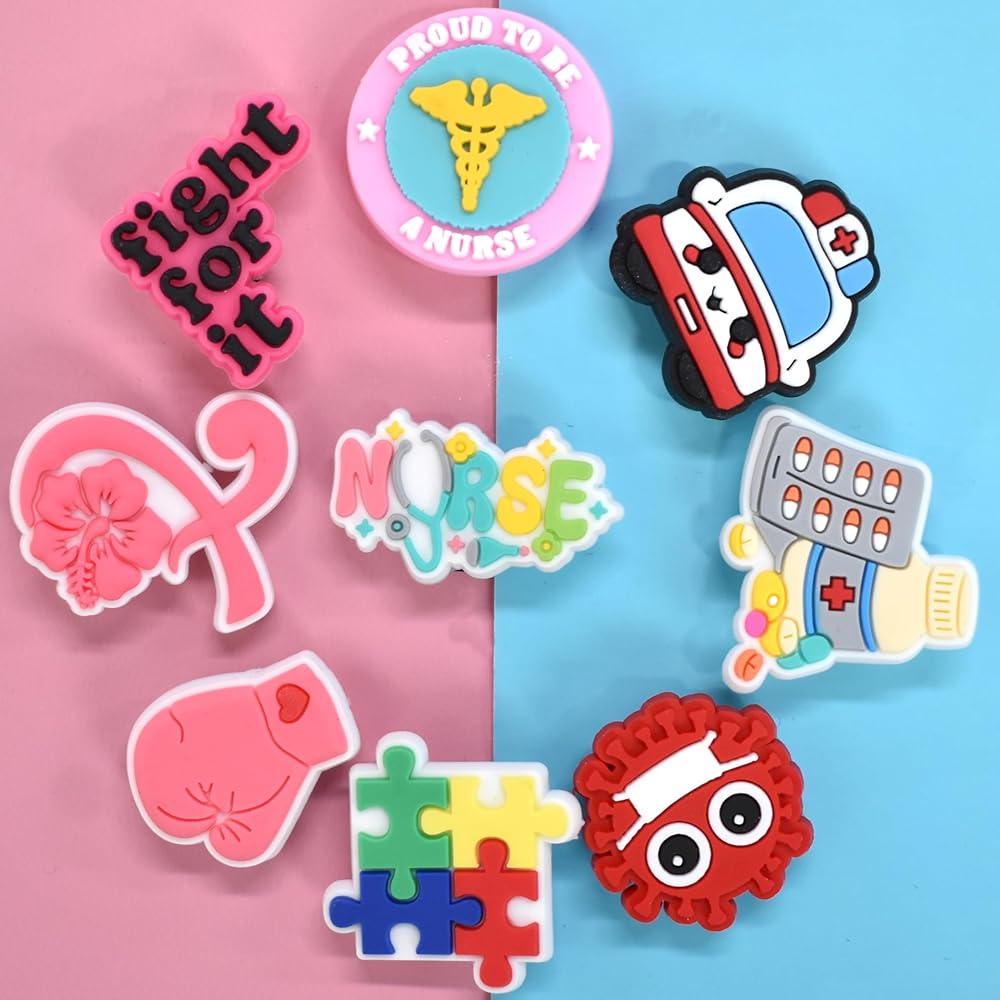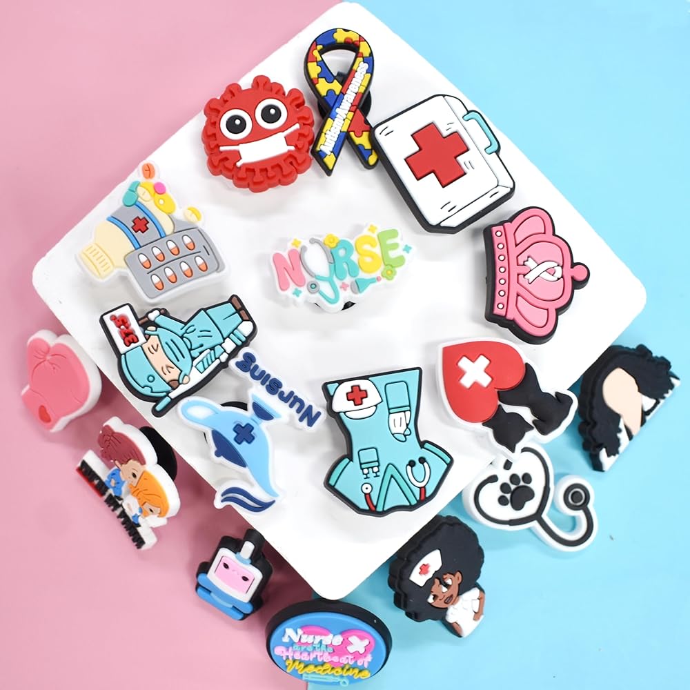 ☞ These medical combination shoe charms may contain stethoscopes, masks, syringes, doctors, nurses, pills, ambulances, virus charms, etc, all fun and unique, so just have fun with these themed shoe decoration charms, however you like.