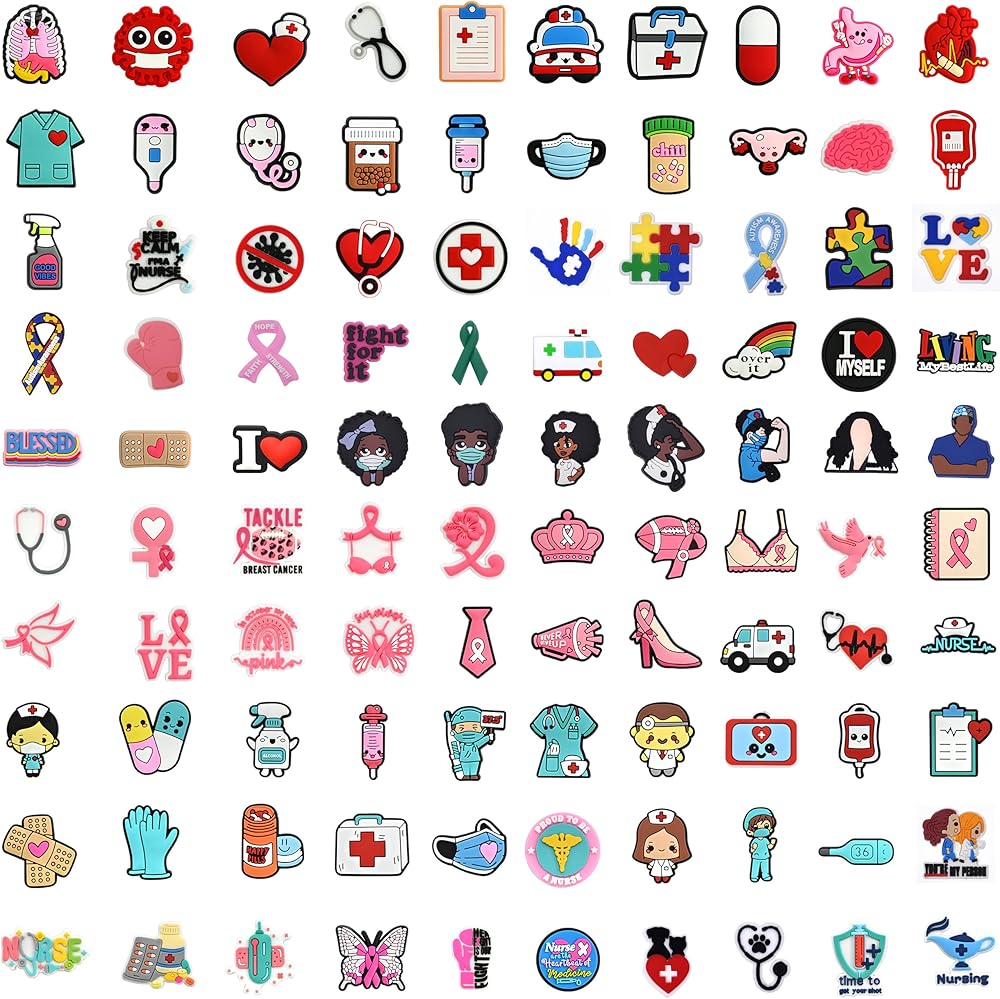 100pieces Shoe Charms Decoration Medical Combination Cute Stethoscope Syringe Pill Shoe Accesooties for Sandals & Bracelet Wristband Nurse/Doctor Medical Care Personnel Gifts Party Favor