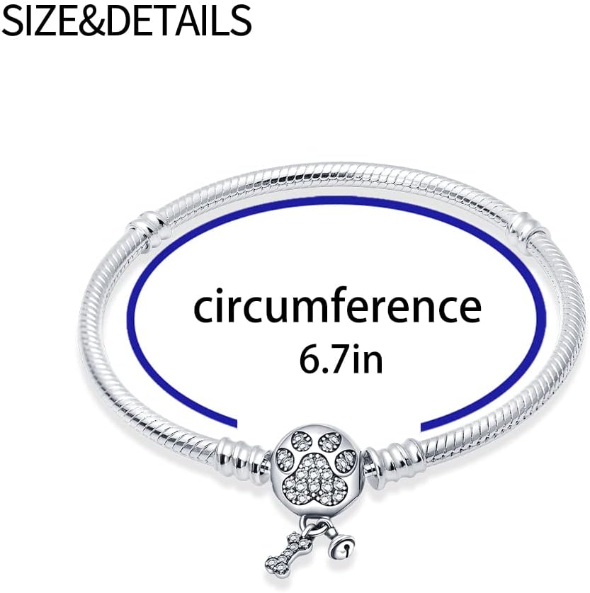 KUNSIR 925 Sterling Silver Snake Chain Bracelet with 5A Cubic Zirconia Cute Claws Buckle Compatible with Pandora charms, Charm Bracelets for Women Teen