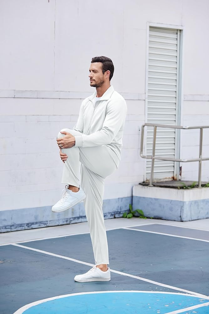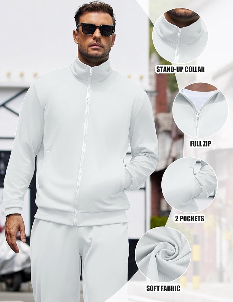OCCASIONS-Men's track siuts sets great for jogging, athletic, running, workout, training, taking a walk, hiking, cycling, traveling and other indoor & outdoor sports. Men full zip sweat suit is essentials to men's wardrobe.
