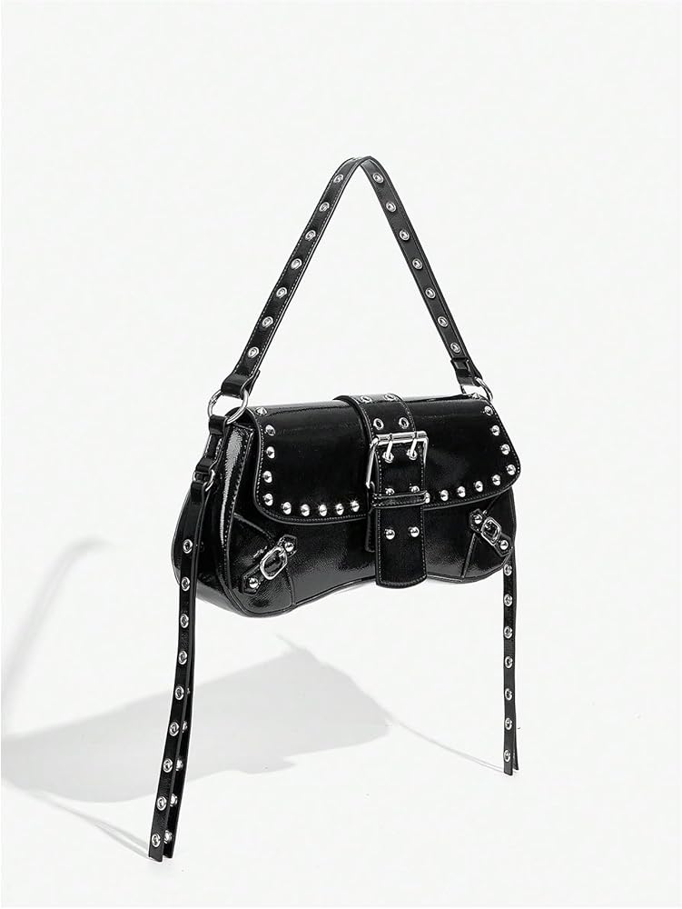 Feature: Y2K gothic punk style, rivet detail, pu leather, hobo bags, shoulder bags for women, handbags for women 2024, clutch handbag underarm purse, medium sized for daily essentials