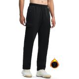 Men's Fleece Lined Sweatpants Straight Leg Cotton Warm Cargo Pockets Open Bottom Winter Running Lounge
