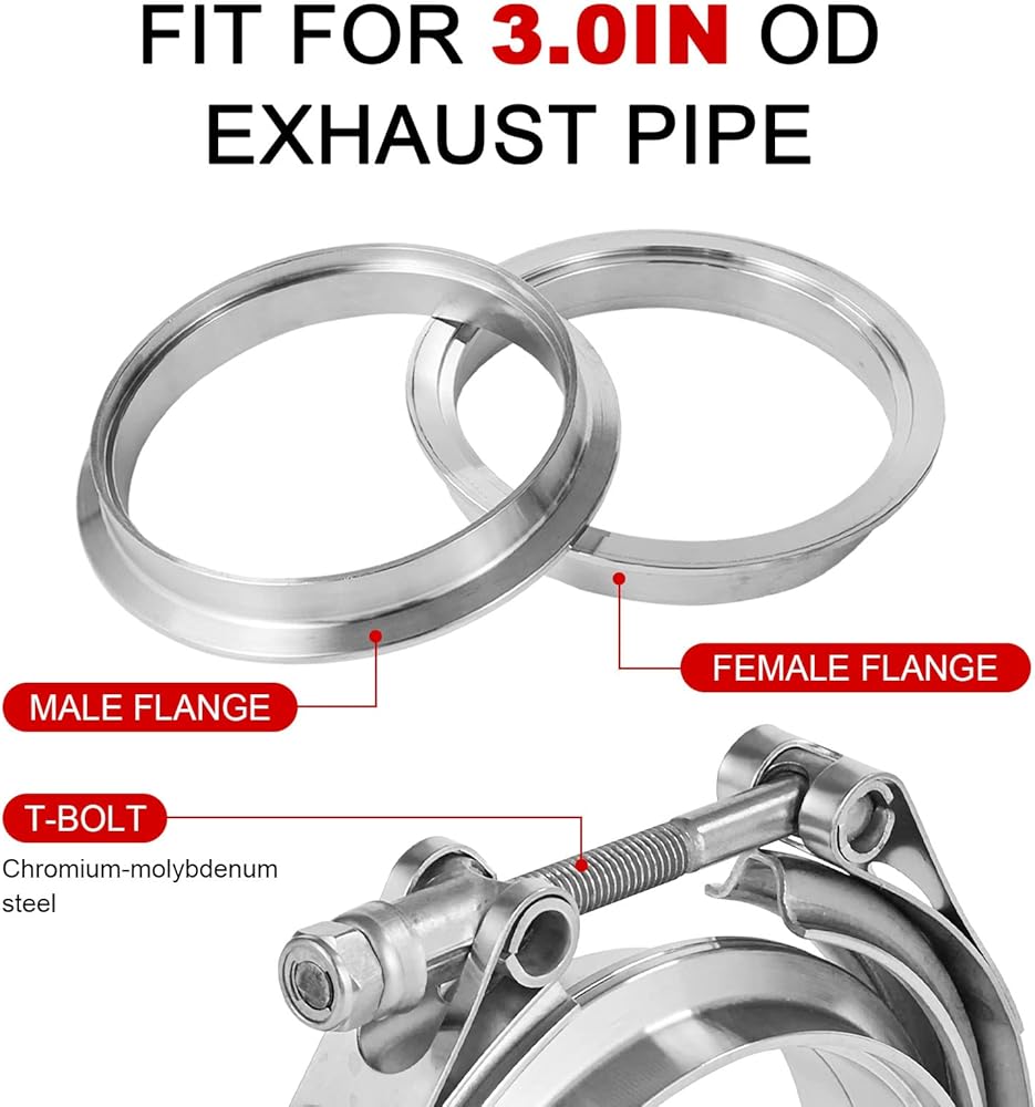 3.5 INCH EXHAUST CLIP KIT - This complete 3.5inch Vband kit includes 1male flange and 2 female flange,304 stainless steel clamp allows for the flanges to properly align during installation to ensure a leak free seal.