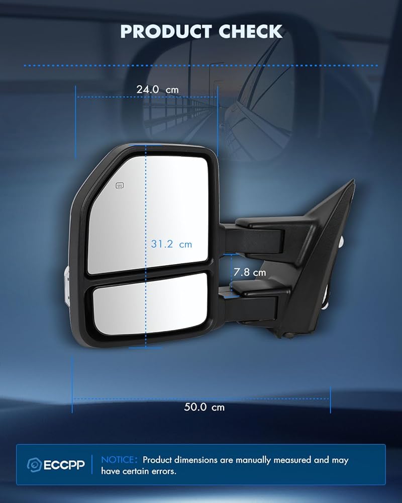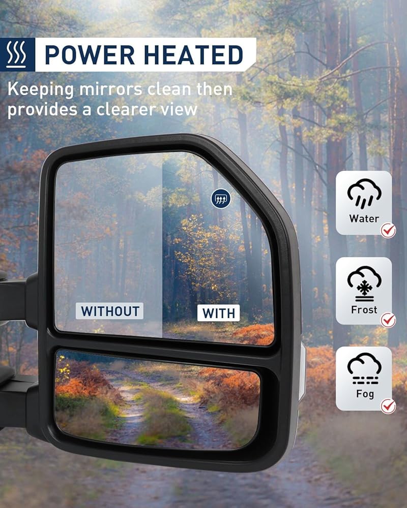 ECCPP Towing Mirrors Fit For 2015-2020 For Ford For F150 Pickup Truck Power Adjusted Heated Turn Signal Light Temperature Sensor Black Cap Housing A Pair driver And Passenger Side