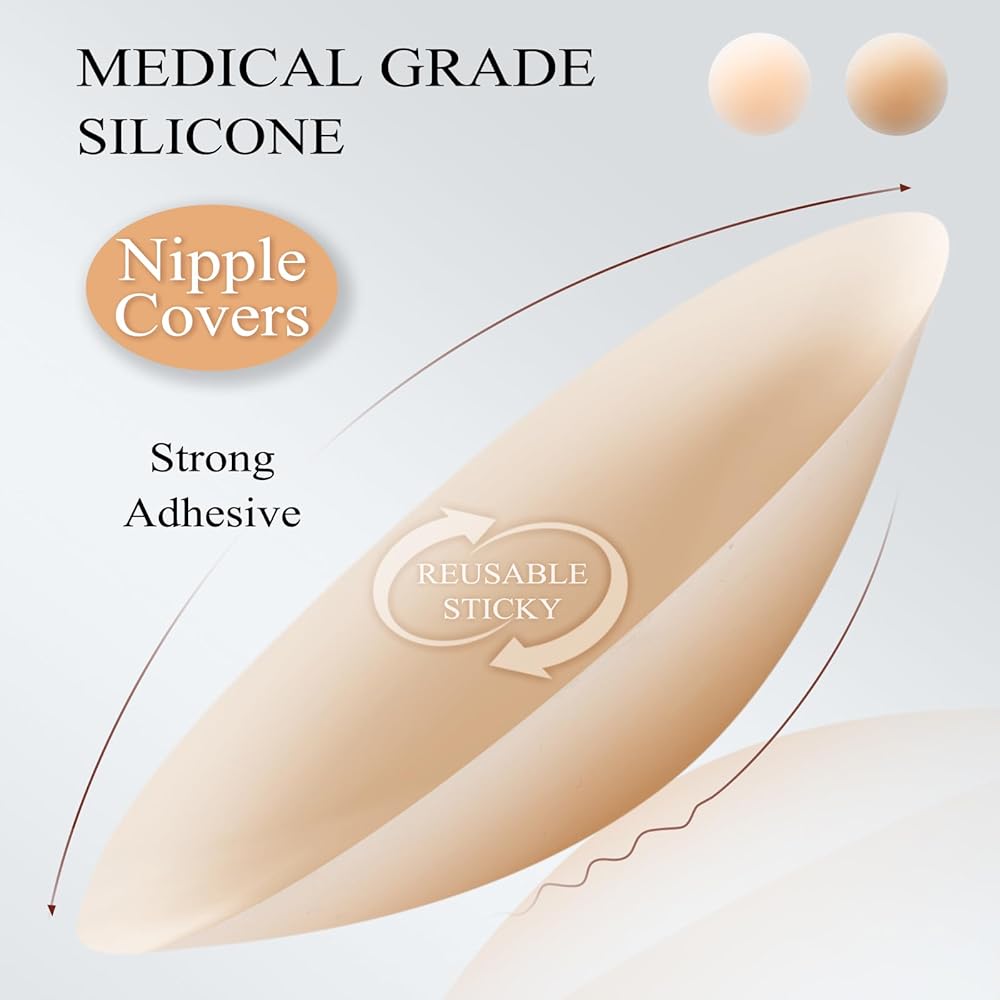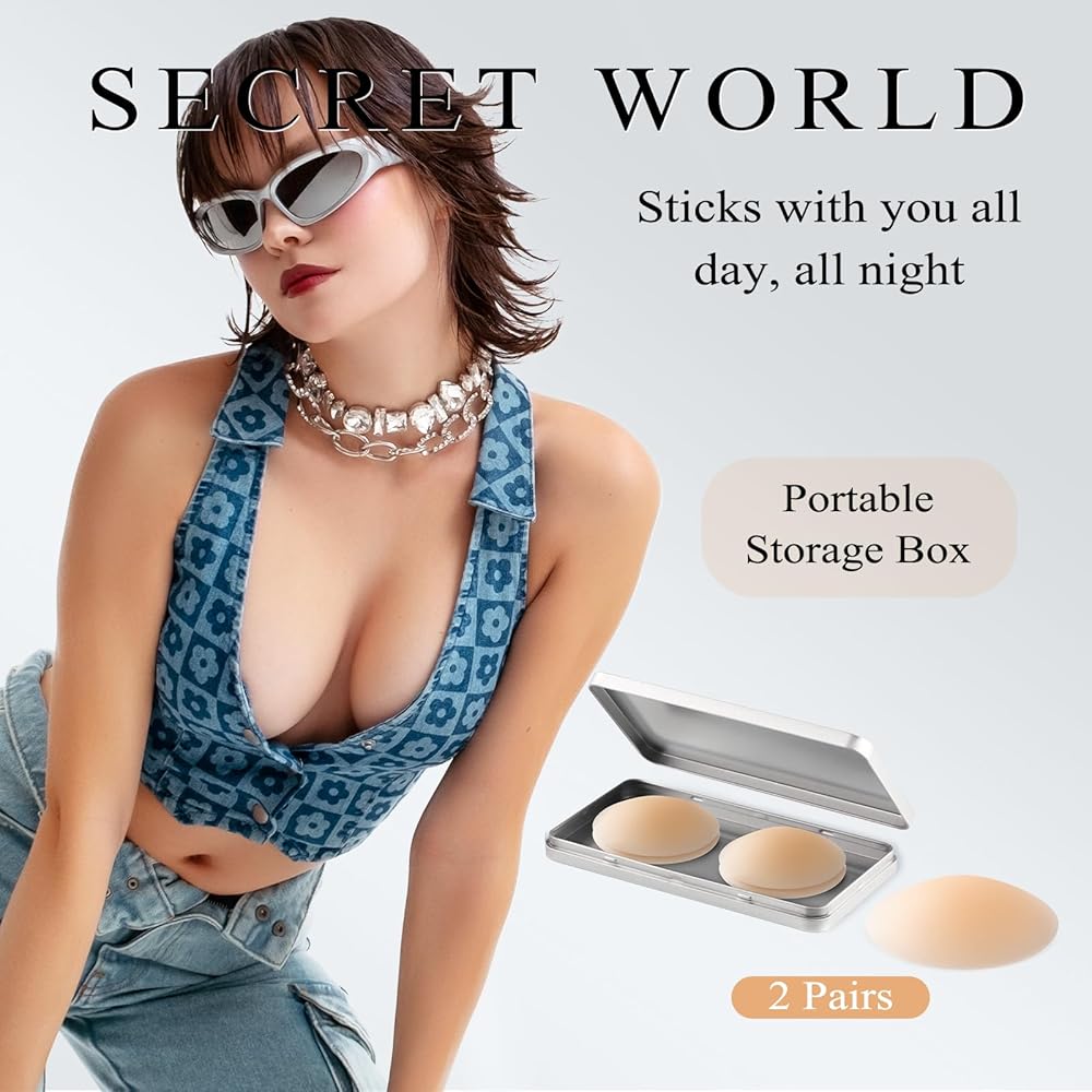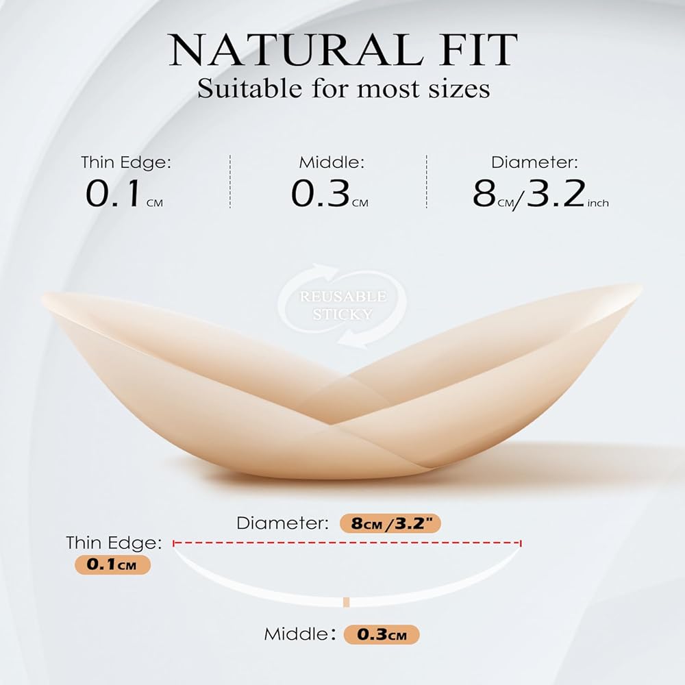 ULTRA THIN & INVISIBLE - This silicone nipple pasties come in 3.2 inches in diameter which is suitable for A-D cups. Its thin edges are able to blend completely with your skin, giving you an ultra-smooth appearance that is almost invisible. No one will notice you're wearing nipple stickers.