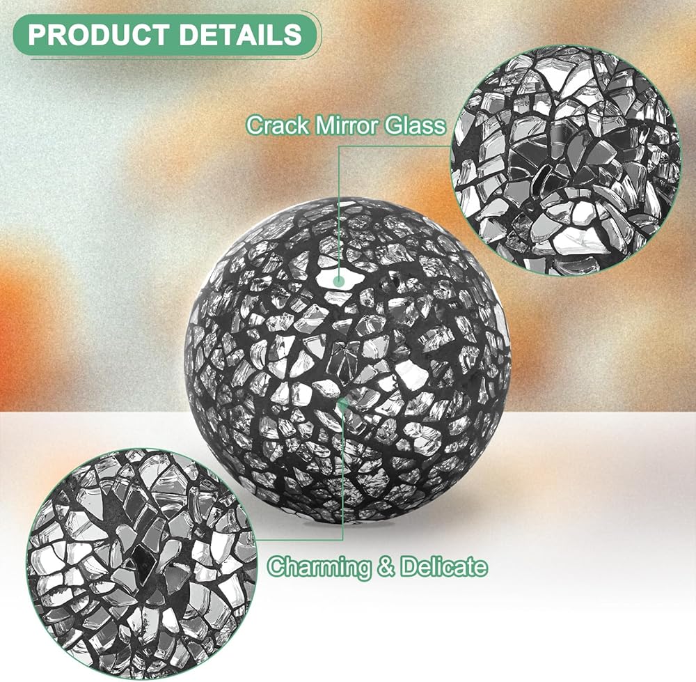 [Modern Decorative ] - The crystal ball showcases a mosaic style with glass mirrors that reflect light from various angles, ensuring beauty from every perspective. These modern decorative balls, when placed in your home, can establish a distinctive atmosphere