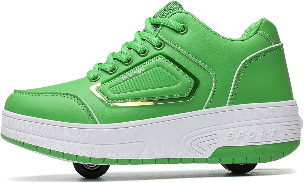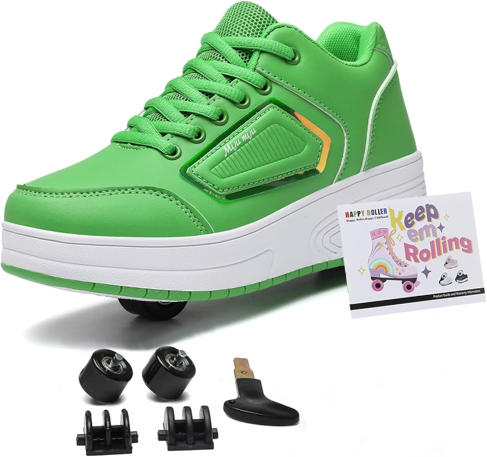 Detachable Wheels: Remove the first wheel and turn the shoe into a single wheel shoe. You can also hide the rear wheel and press the button on the heel to turn them into regular shoes. In roller skating mode, the two wheels give a feeling of inline skate shoes.