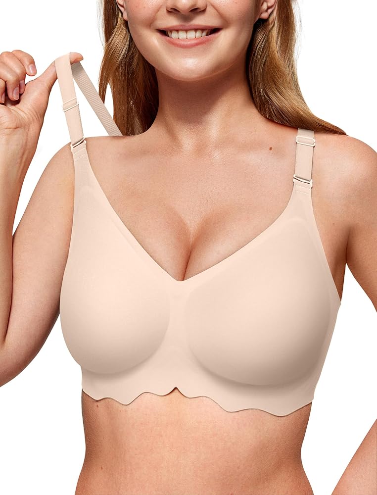 Comfortable & Soft: The women's seamless bra is buttery soft, stretchy, and breathable, keeping you comfy all day long. A smooth and seamless fit under clothing. With its V-neck design and scalloped underband, it combines style with comfort, offering a flattering shape that enhances your natural curves