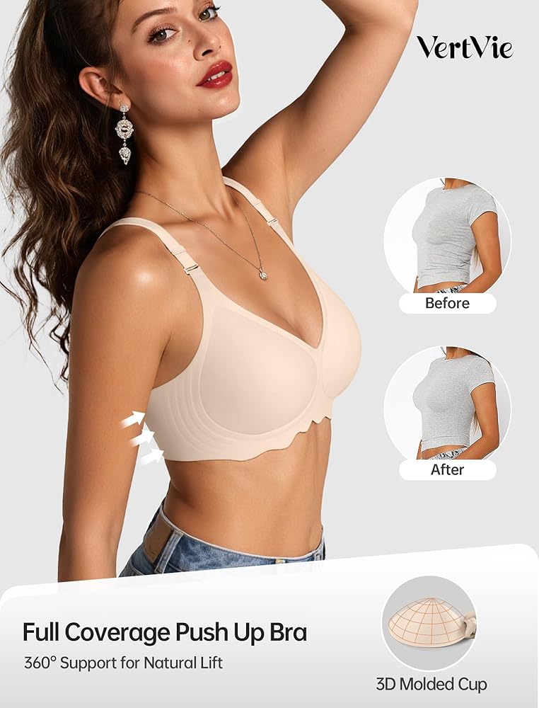 Supportive Bras, No Wires: Experience everyday comfort with the wireless bras with support and lift! This no underwire push up bra utilizes innovative soft jelly strip technology, providing 360° support and a perfect fit to create a full and round shape. The 3D molded cups add extra support, and the lightweight semi-fixed padding enhances comfort without feeling bulky
