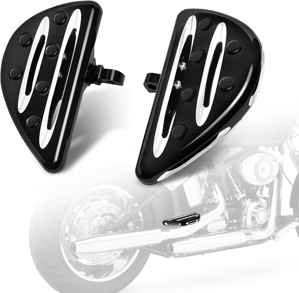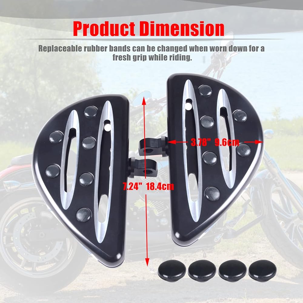 Stylish Design: Length: 7.2", Width:3.8" , Pair of black CNC cut motorcycle pegs foot rests, works great with both traditional and contemporary customizing styles.
