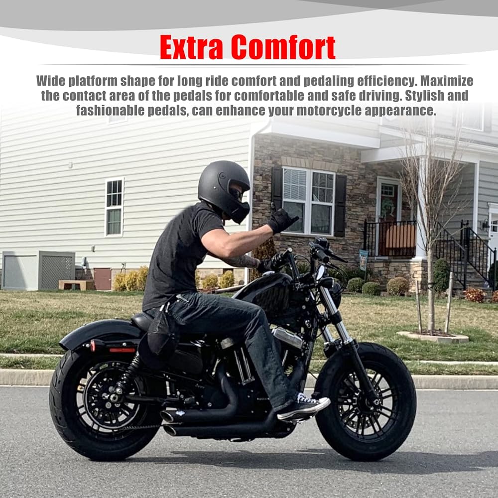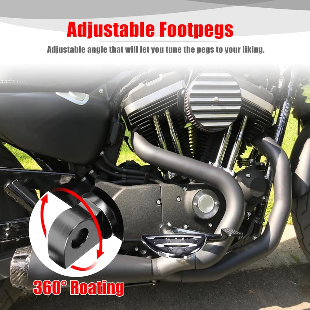 Extra Comfort: Iron 883 foot pegs/boards 360 degree fully adjustable for a comfortable ride, provides a wider surface area and a flatter support position.