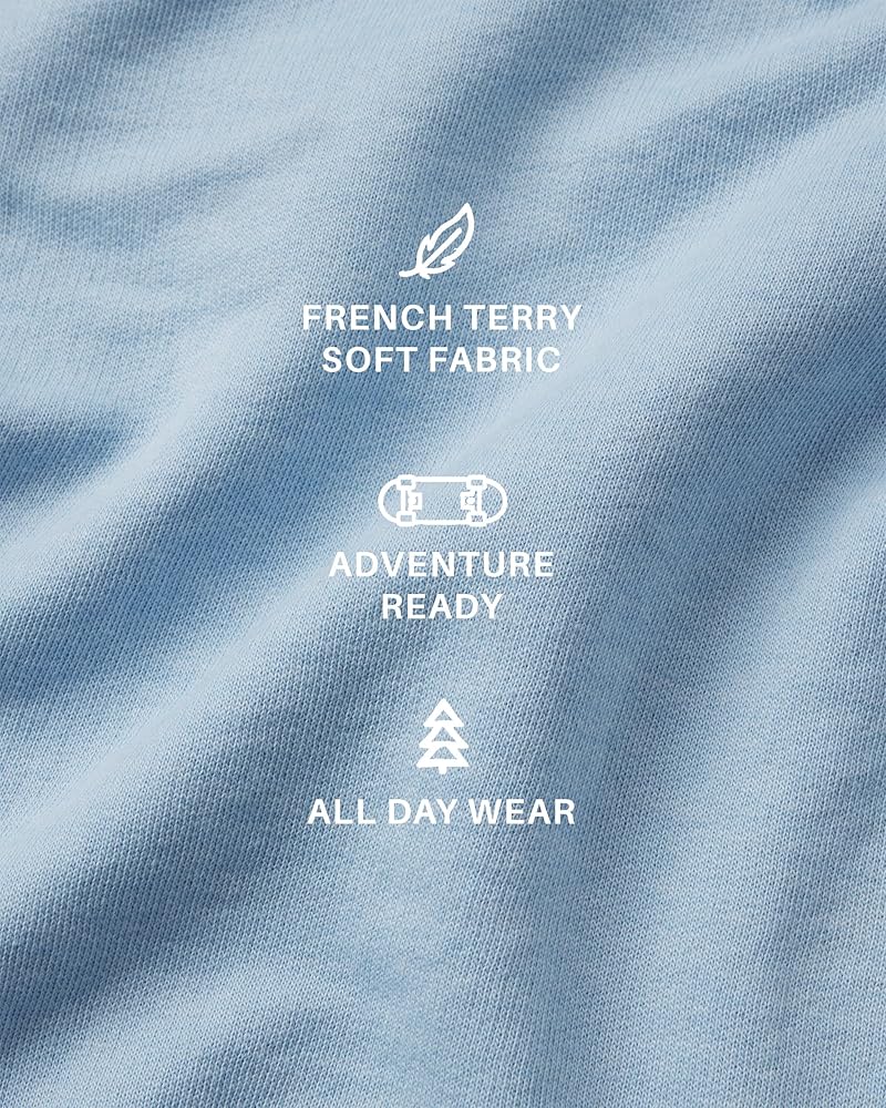 Lightweight French Terry Fabrication: Breathable cotton-poly French terry knit fabric offers soft and comfy wear no matter the season