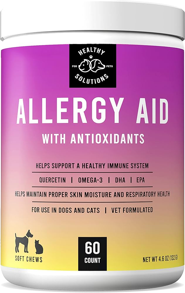 HIGH-QUALITY ALLERGY SUPPLEMENT FOR DOGS, CATS: Help your furry friend weather the changes in season with this Healthy Solutions for Pets Allergy Aid for Dogs and Cats. This pet supplement is rich in antioxidants, omegas, DHA and EPA to help boost your pet's immune system.