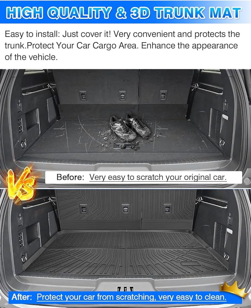 【Upgraded Version】High-density TPE materials ensure high elasticity to make the trunk mat wear-resistant, scratch-resistant and durable. It will not deform, harden or break under extreme weather, but remains flexibility and resilience.
