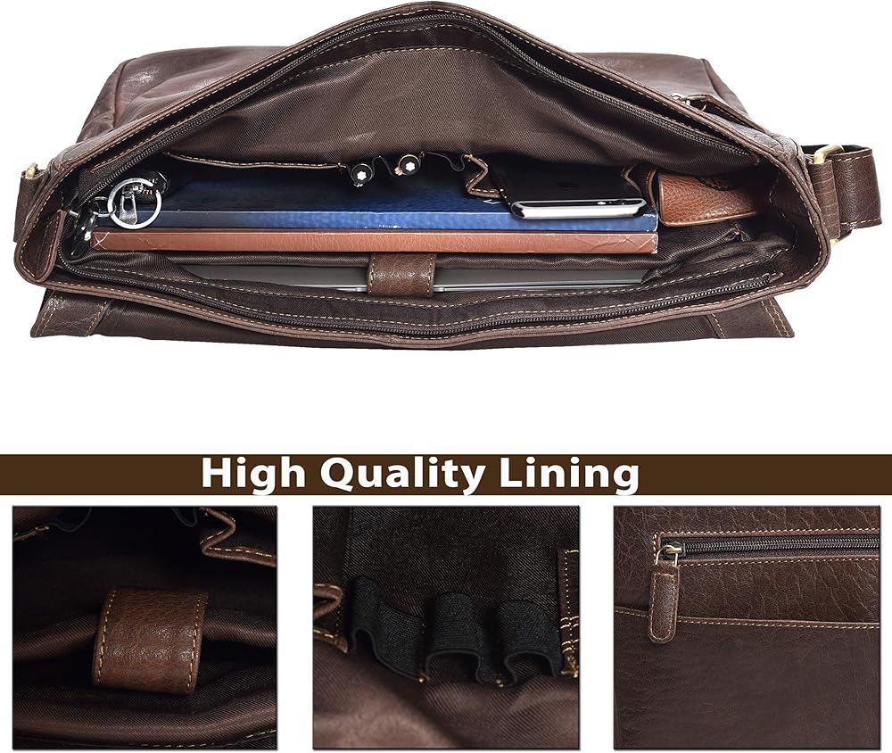 Spacious Organization: Keep everything organized with a roomy main compartment, zippered pockets, and inner wall sections. Ideal for storing wallets, chargers, documents, and office essentials in mens messenger bags.