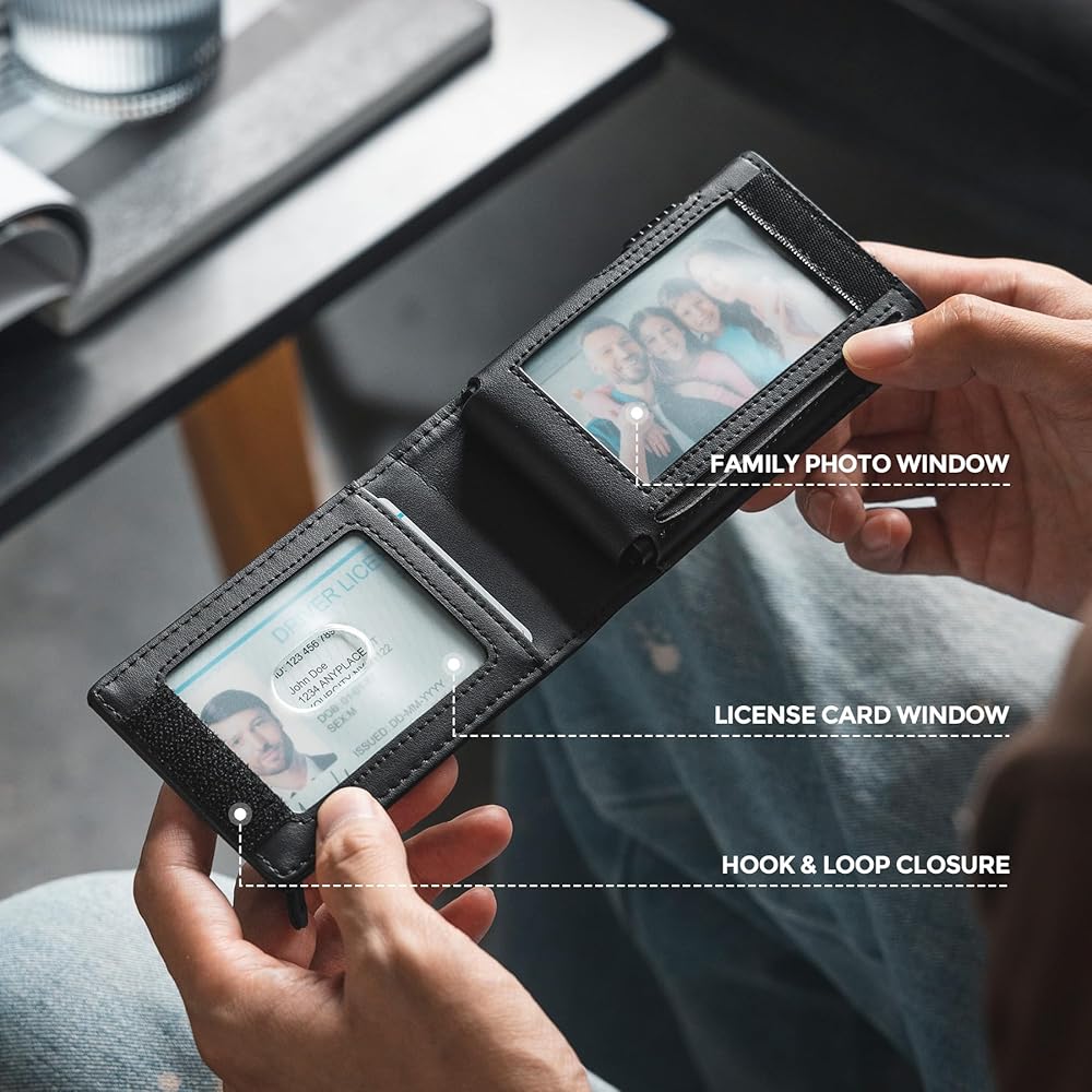 【Convenient Design】You can easily open and securely close the wallet with the hook and loop closure. Designed to easily display your driver's license and ID card, this design can also fit in your family photos so that you can always see the ones you are missing.