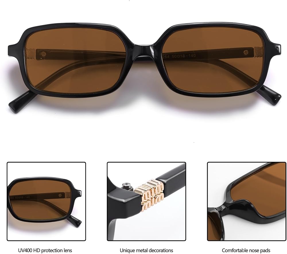 UNIQUE METAL DESIGN: The metal pieces on the temples of Retro Rectangular Sunglasses are small and delicate with an exclusive look. Adds a 90's vibe. Whether it's a birthday gift, anniversary gift, or a great gift, these glasses are the best choice.