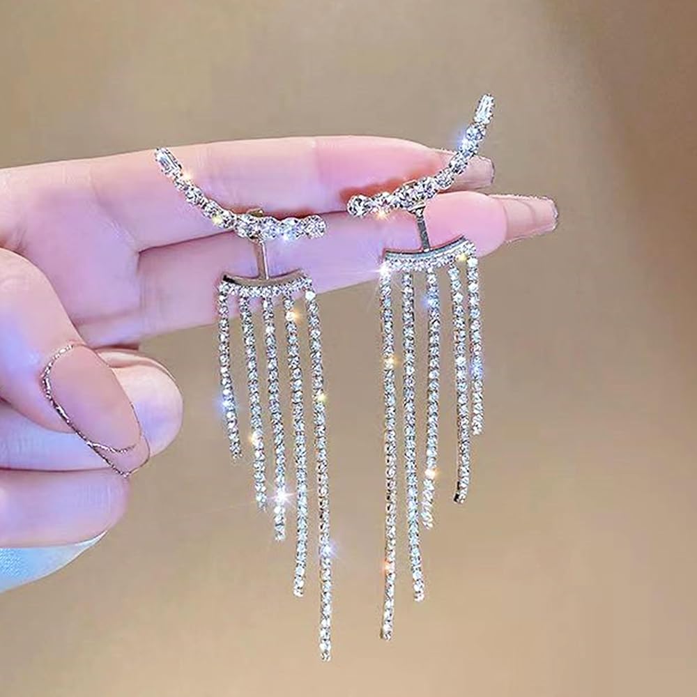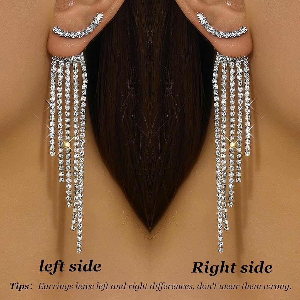 CRYSTAL TASSEL EARRING UNIQUE DESIGN: If you are going out to a party or banquet, These silver rhinestone long tassels wedding bridal dangle earrings are the perfect accessory that will enhance your outfit. It features an amazing design and will suit any formal or casual ensemble.
