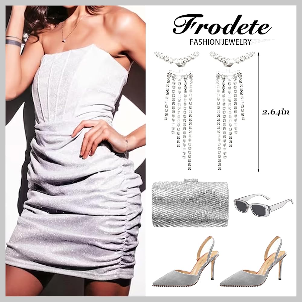 Rhinestone Tassel Earrings for Women Dress Silver Fringe Prom Earrings Long Tassel Bling Crystal Dangle Drop Earrings Mothers Day Gifts Wedding Party Prom Dress Jewerly 2024