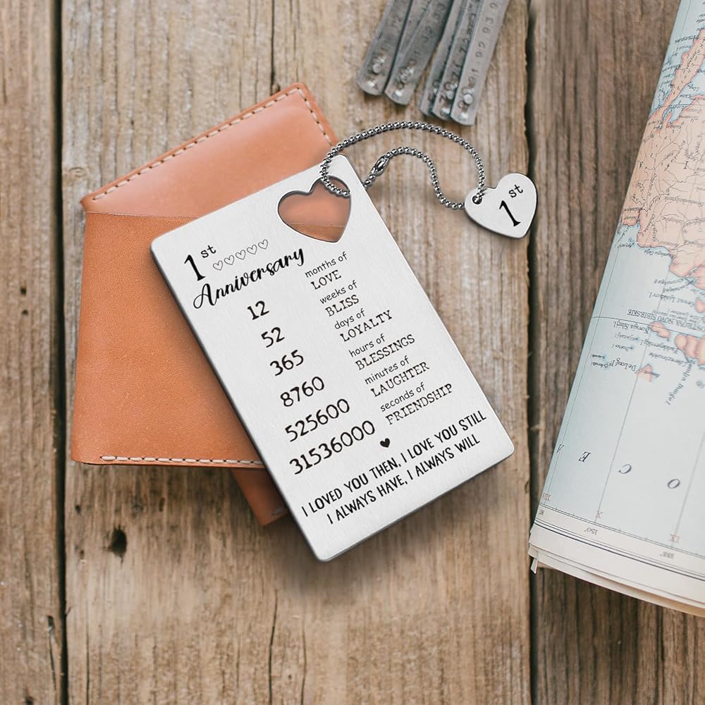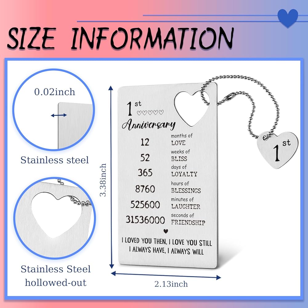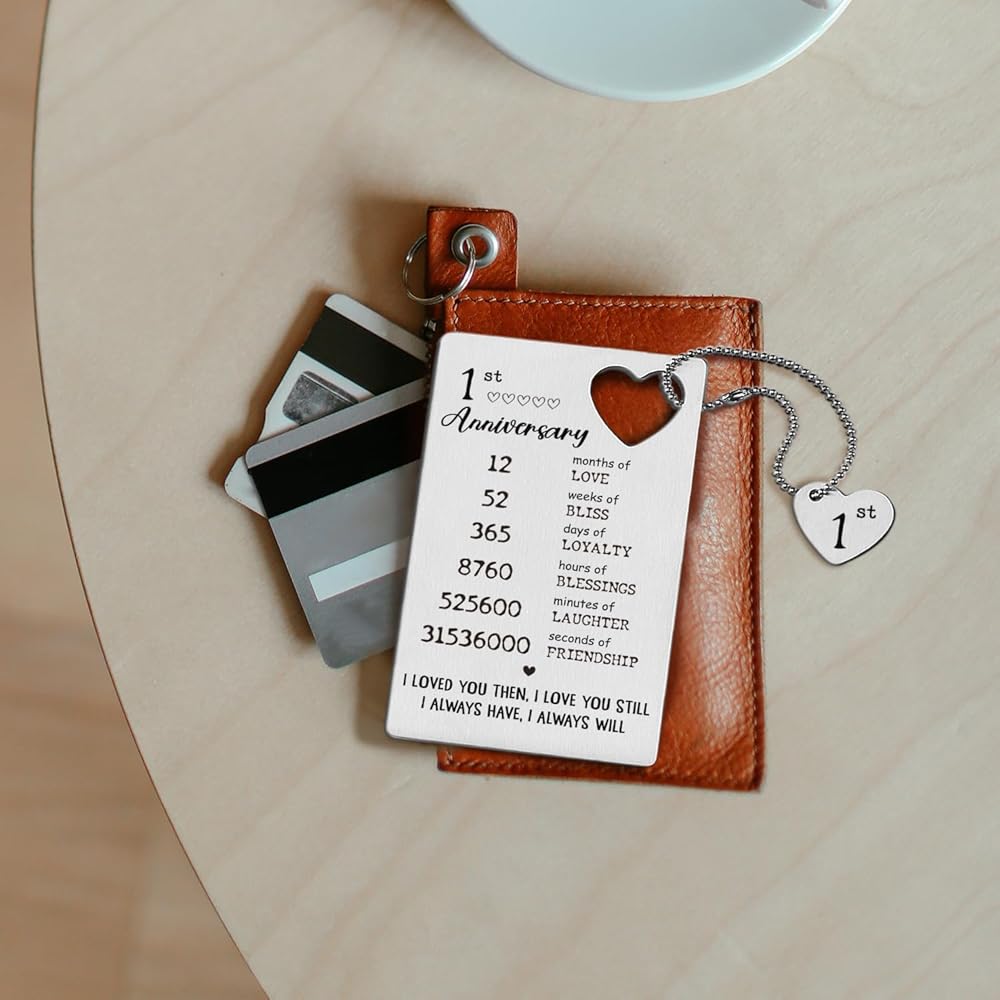 TRCENDE Metal Engraved Happy 1 Year Anniversary Wallet Card Gifts for Boyfriend Girlfriend Husband Wife, First 1st Wedding Anniversary Card Gift for Him Men Her Women XCD35