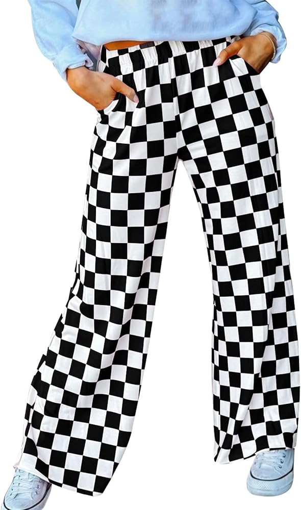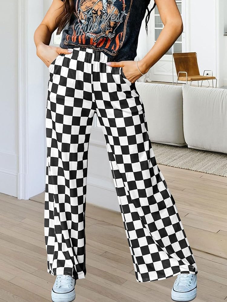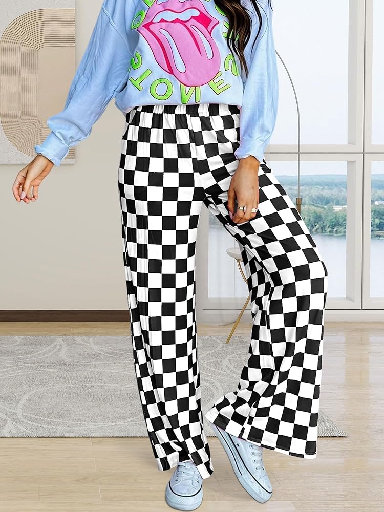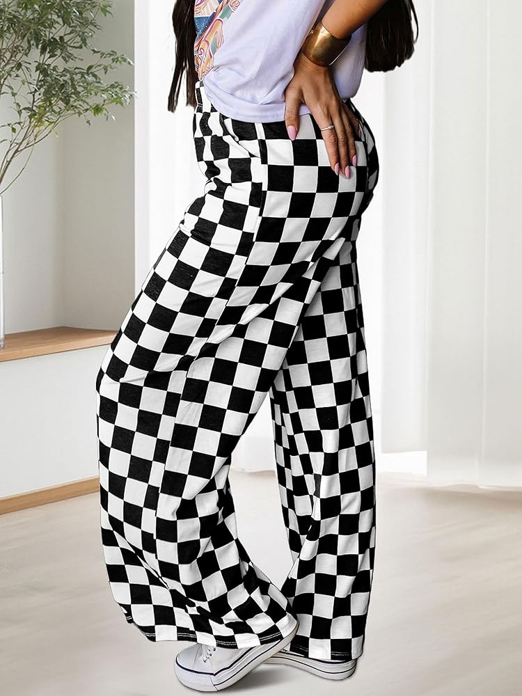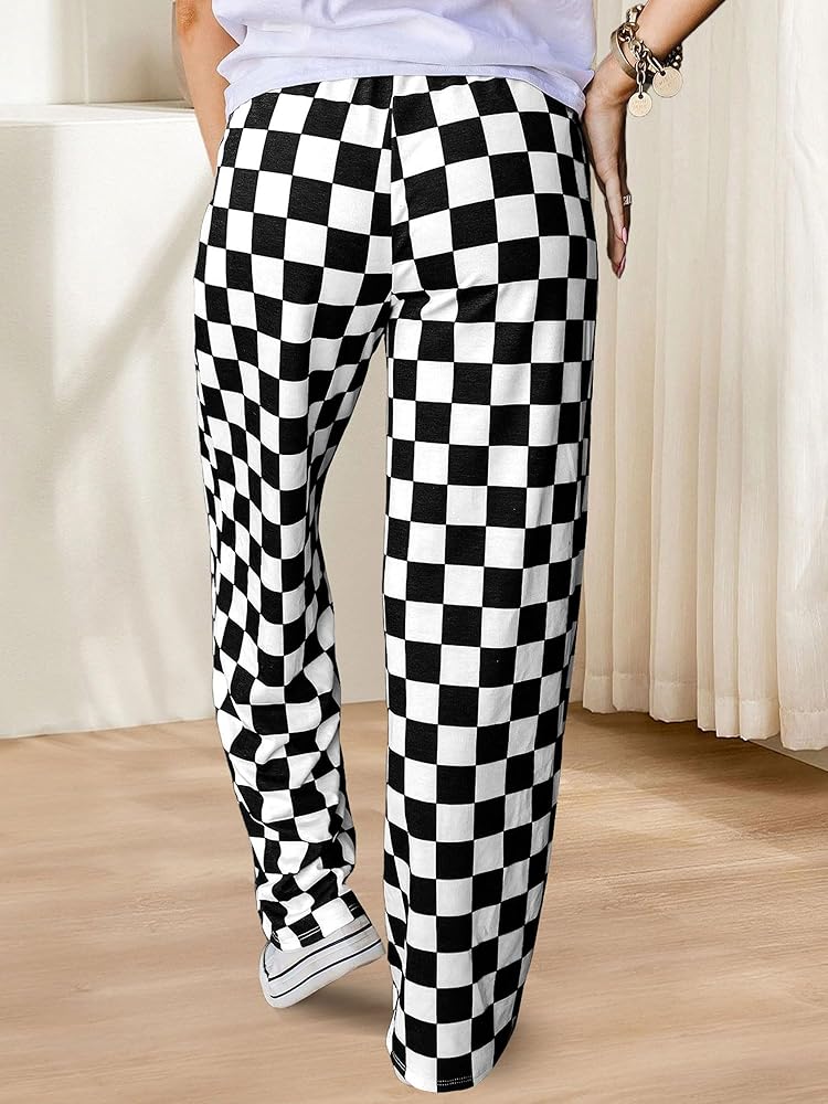 FEATURE: Plaid pants for women, checkered lounge pants, pajama pants women, y2k plaid pants, checkered print wide leg pants, black and white checkered pants, straight leg plaid lounge trouser, comfy gingham pants for women, baggy striped pants women