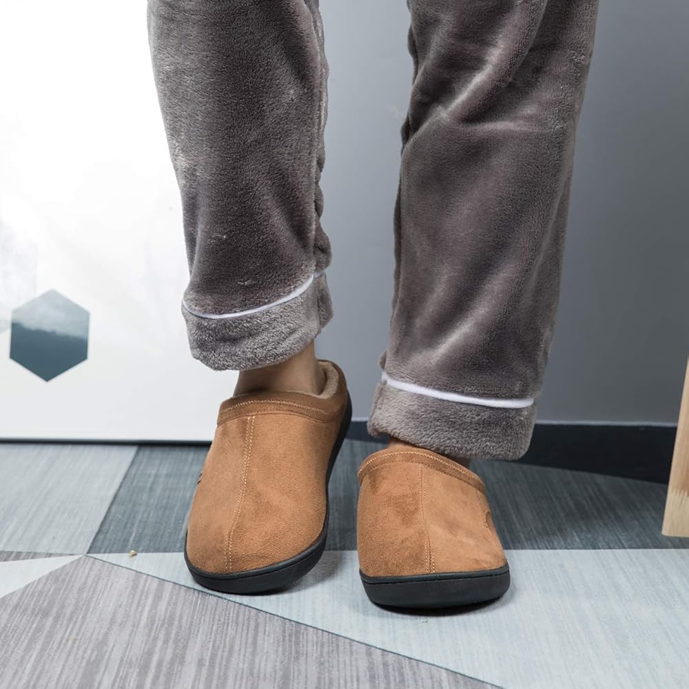 Multi-Use & Easy Maintenance - Men slippers with cozy fleece heel collar is easy to slip on and off. Perfect use for house slippers, bedroom slippers, and indoor outdoor slippers. Also, They are both hand and machine washable(Machine wash with a laundry bag).