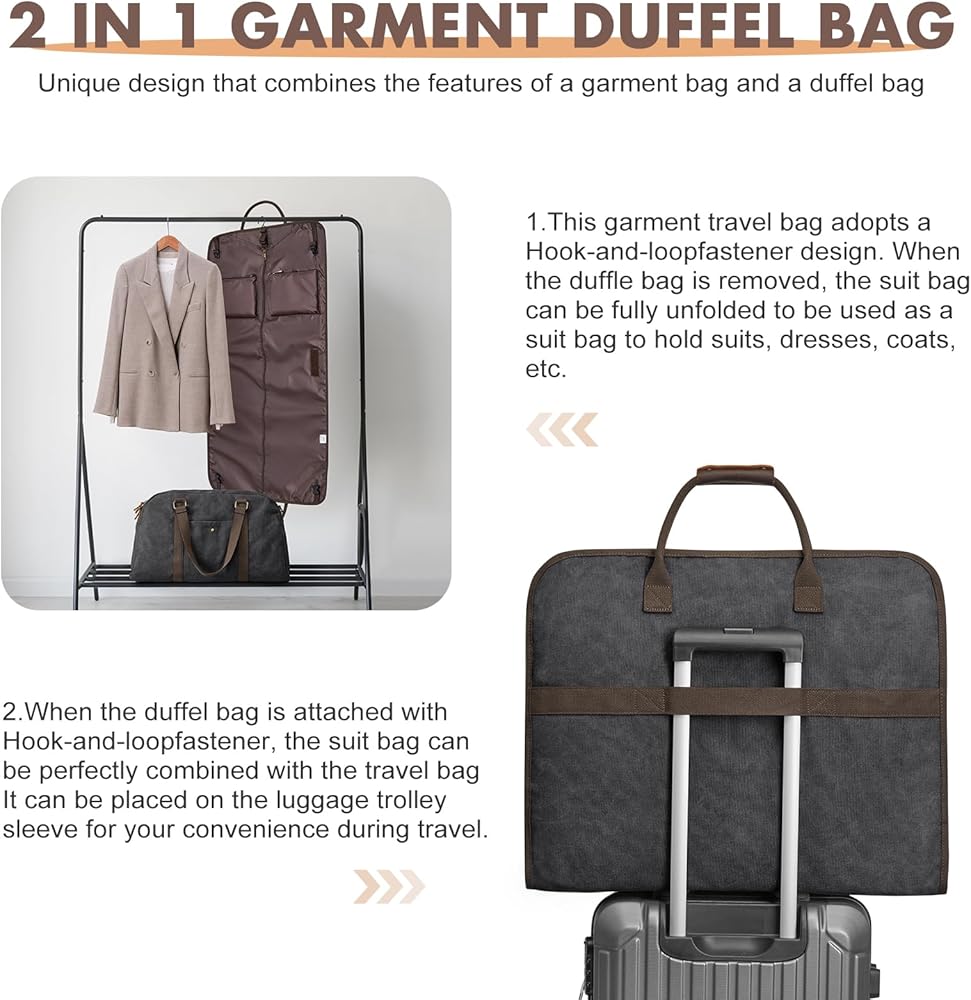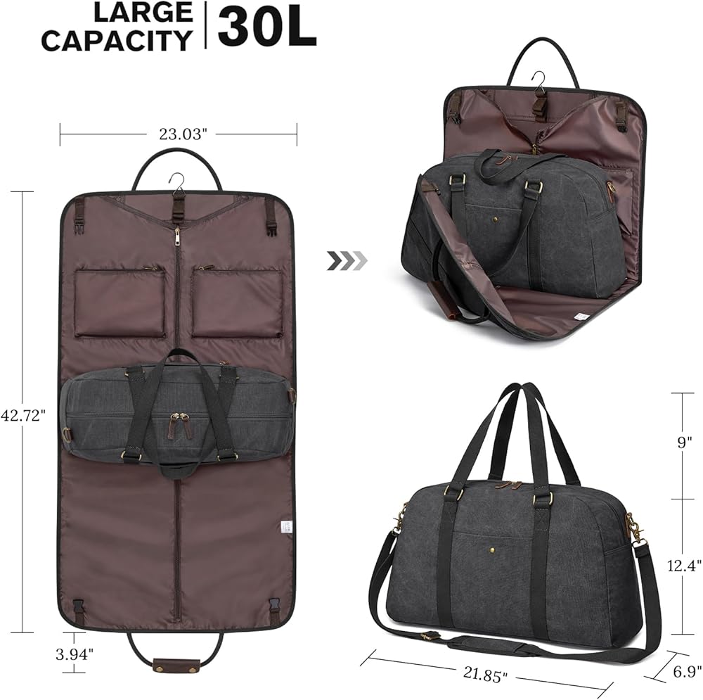 Multipurpose: Suitable for both men and women, the canvas travel garment bag can be used as a business duffle bag, weekender bag, overnight bag, short-term travel bag, camping bag, sports duffle bag, or carry-on luggage