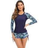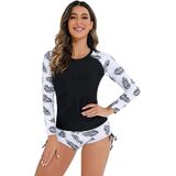❤ ❤ Womens Rash Guard Swimsuit 2 Piece Long Sleeve Sun Protection Bikini Swimwear Crop Swim Tops with Shorts Bathing Suit❤ ❤