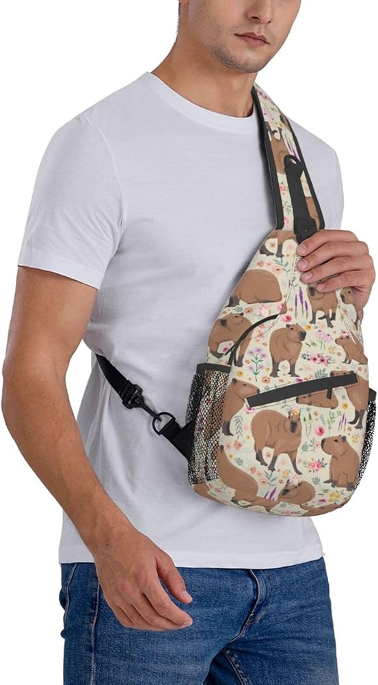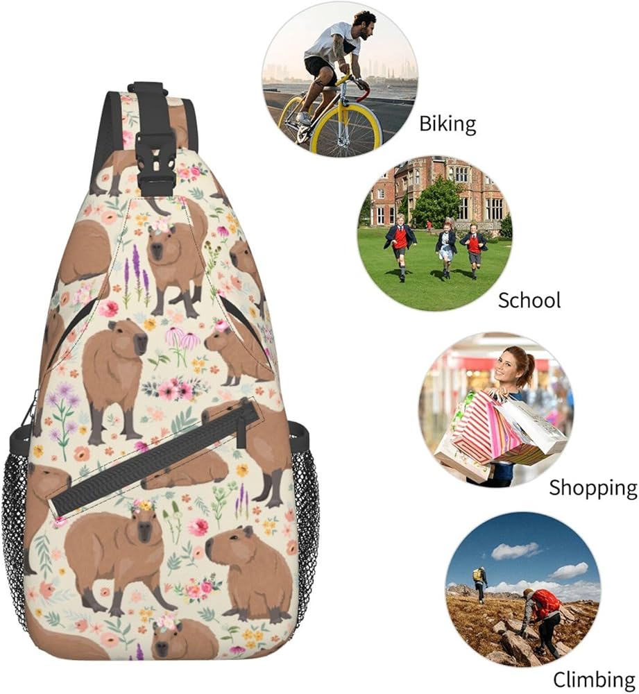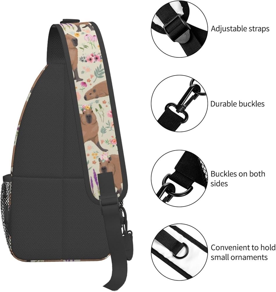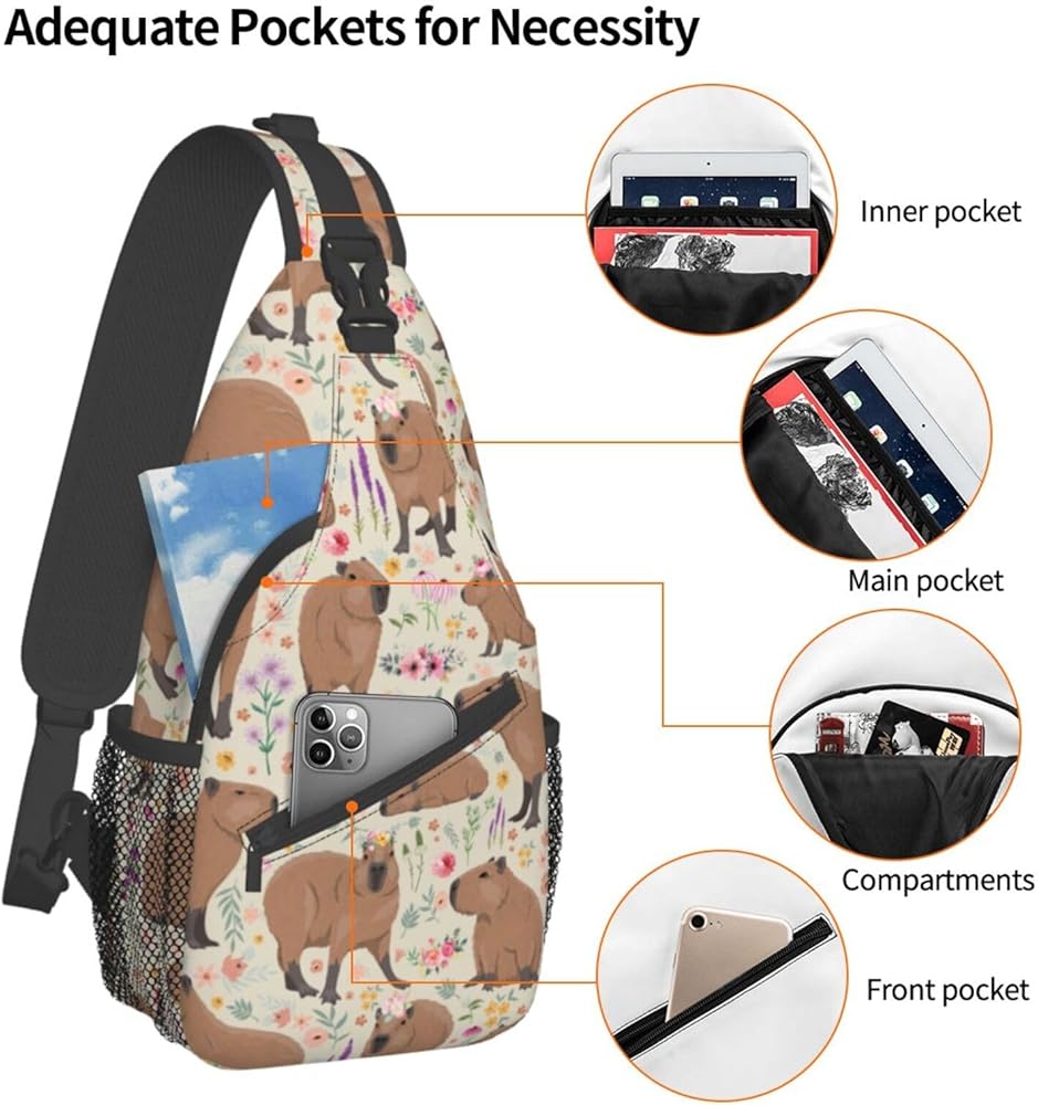 【Dimension】:Size: 15.5'' * 3.5'' * 7.5''. Adjustable Non-Slip Shoulder Strap, 2 Mesh Bags On Each Side. The Sling Bag Can Be Used As Sling Backpack, Cross Body Bag, Chest Bag And Shoulder Bag, Making It Lightweight And Convenient To Carry.