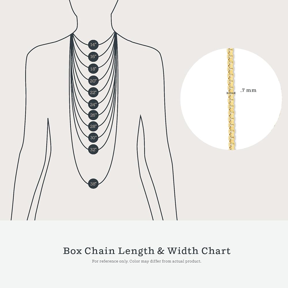 Tangle-Free, Lightweight, and Sturdy Box Link Chain Design: The box link design of our 925 sterling silver necklace will not twist or kink like some other types of chains; wear this women's sterling silver necklace without wasting time untangling it; measuring a mere 0.7 mm thin, the 925 silver chain is lightweight and easy to wear while remaining sturdy.