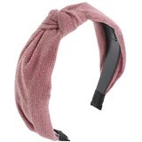 This one size fits most women's headband comes to a twist at the top turban style for a fashionable knotted womans headband.